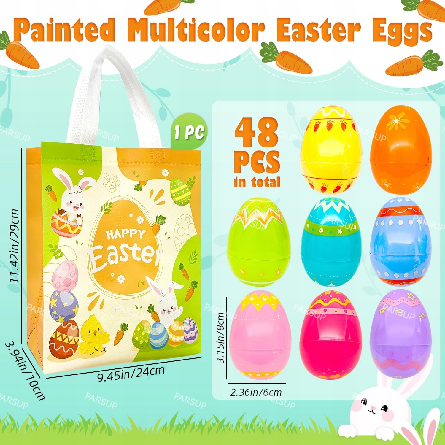 ВЕЛИКОДНІ ЯЙЦЯ x48 КОЛЬОРОВИХ ЯЄЦЬ ДЛЯ НАЧИНКИ НА ВЕЛИКОДЕНЬ + МІШОК