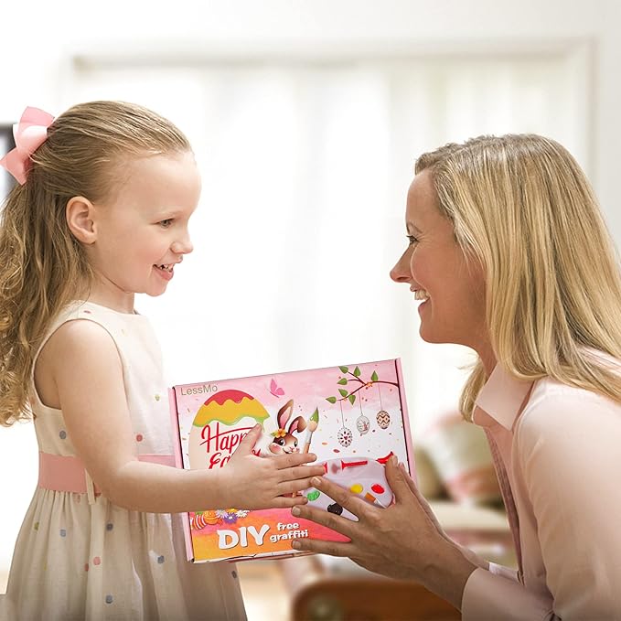 Набір упакований у красиву коробку з милими кроликами та весняними кольорами.