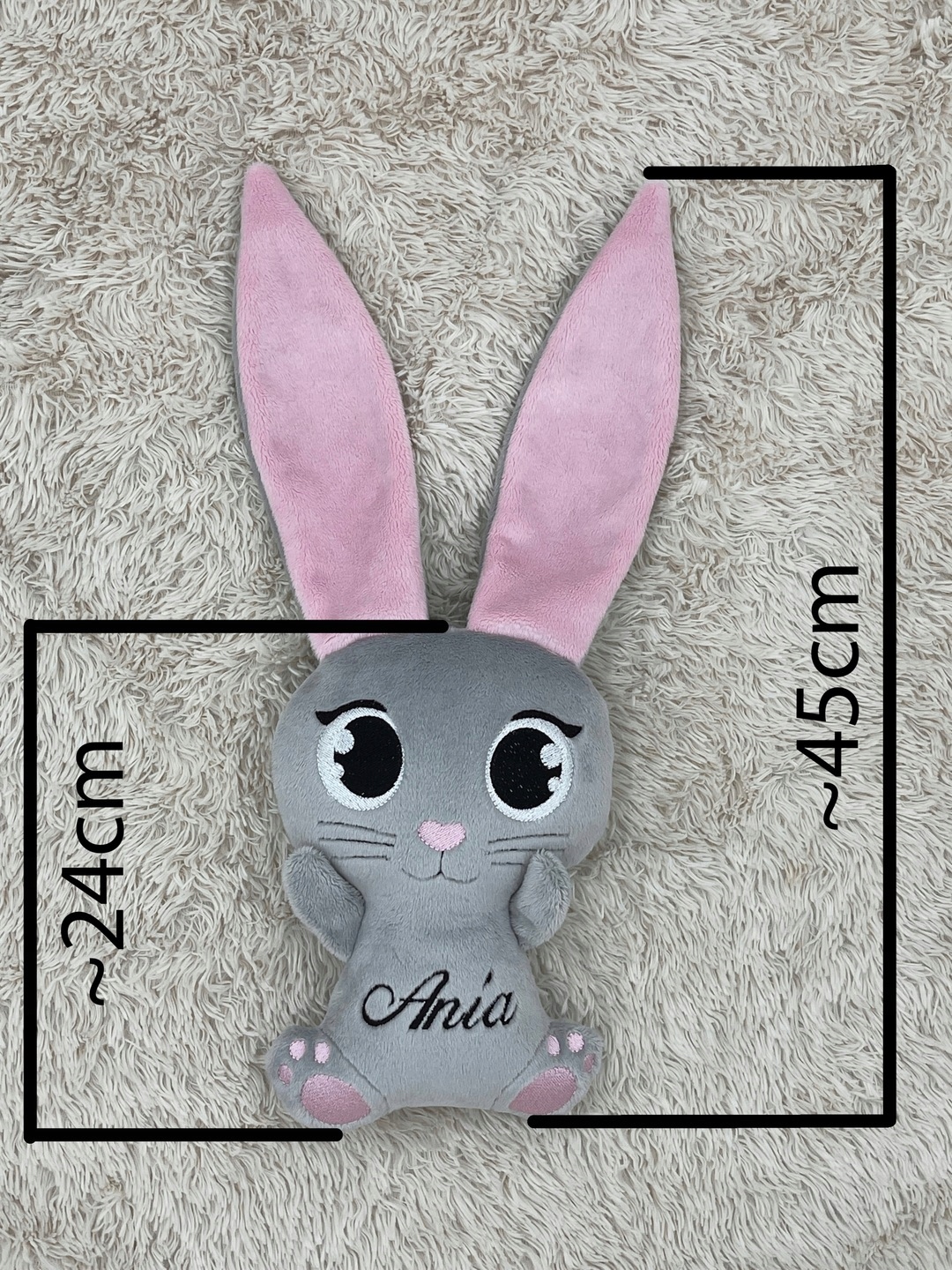 Зайчик виготовлений спеціально для вас. На вушках можемо вишити ім'я або будь-який текст.