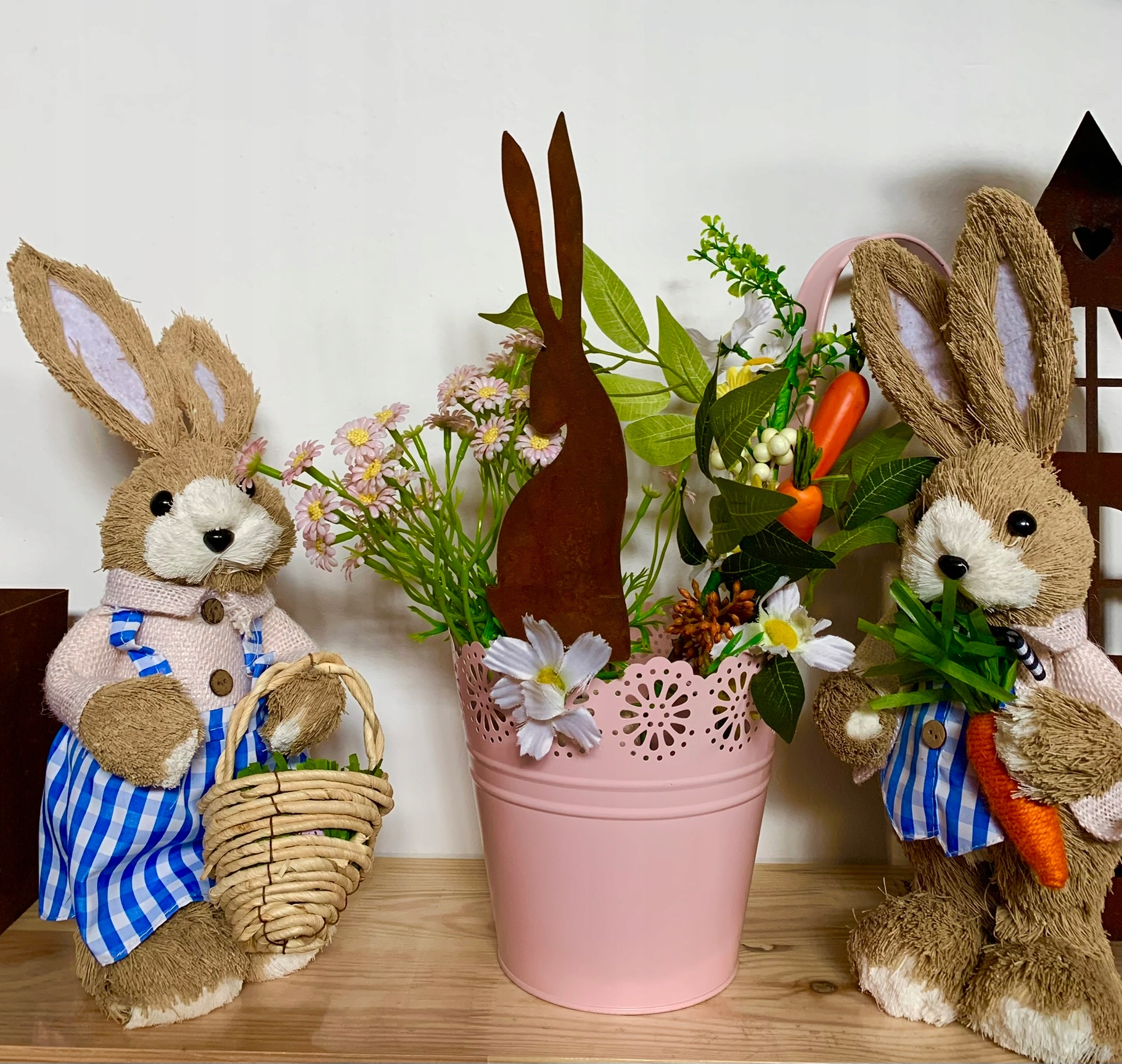 Додайте унікальний акцент до свого саду, балкона чи горщика! Наш металевий великодній заєць - це елегантне прикраса старовинного стилю, покрита декоративною іржею , надаючи йому унікальний, природний вигляд.