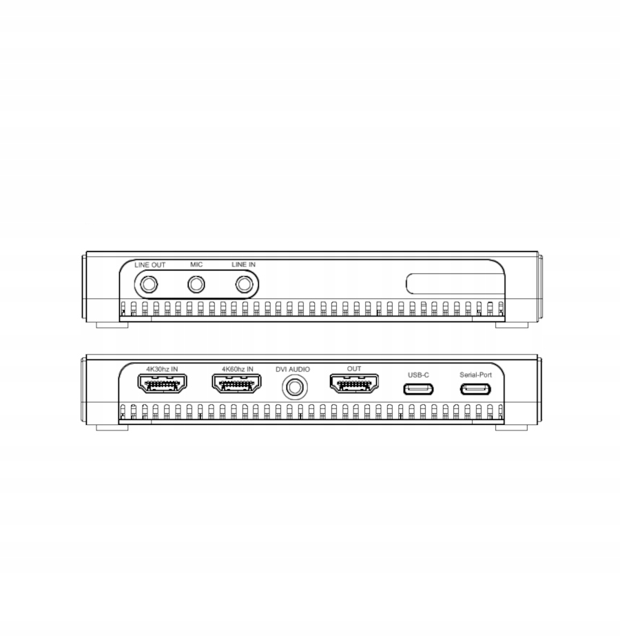- Виходи: HDMI (петля низької затримки), лінійний аудіо, USB типу C (дані), ІЧ дистанційне керування.