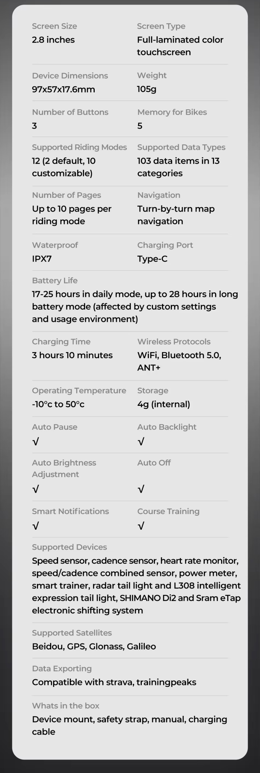 - Сумісність із: Strava, Trainingpeaks,