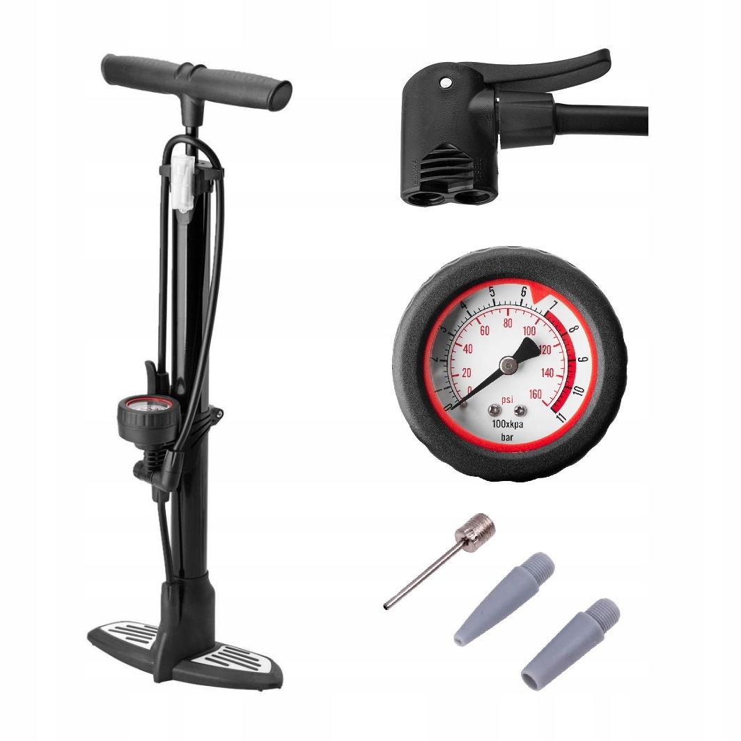 ЧОРНИЙ АЛЮМІНІЄВИЙ підлоговий насос, завдяки якому можна накачати всі типи клапанів. Завдяки точному манометру ви можете налаштувати тиск відповідно до своїх потреб. Голки в комплекті також дозволять вам надувати м'ячі, матраци та надувні іграшки, а завдяки зберіганню на насосі ви ніколи їх не втратите.