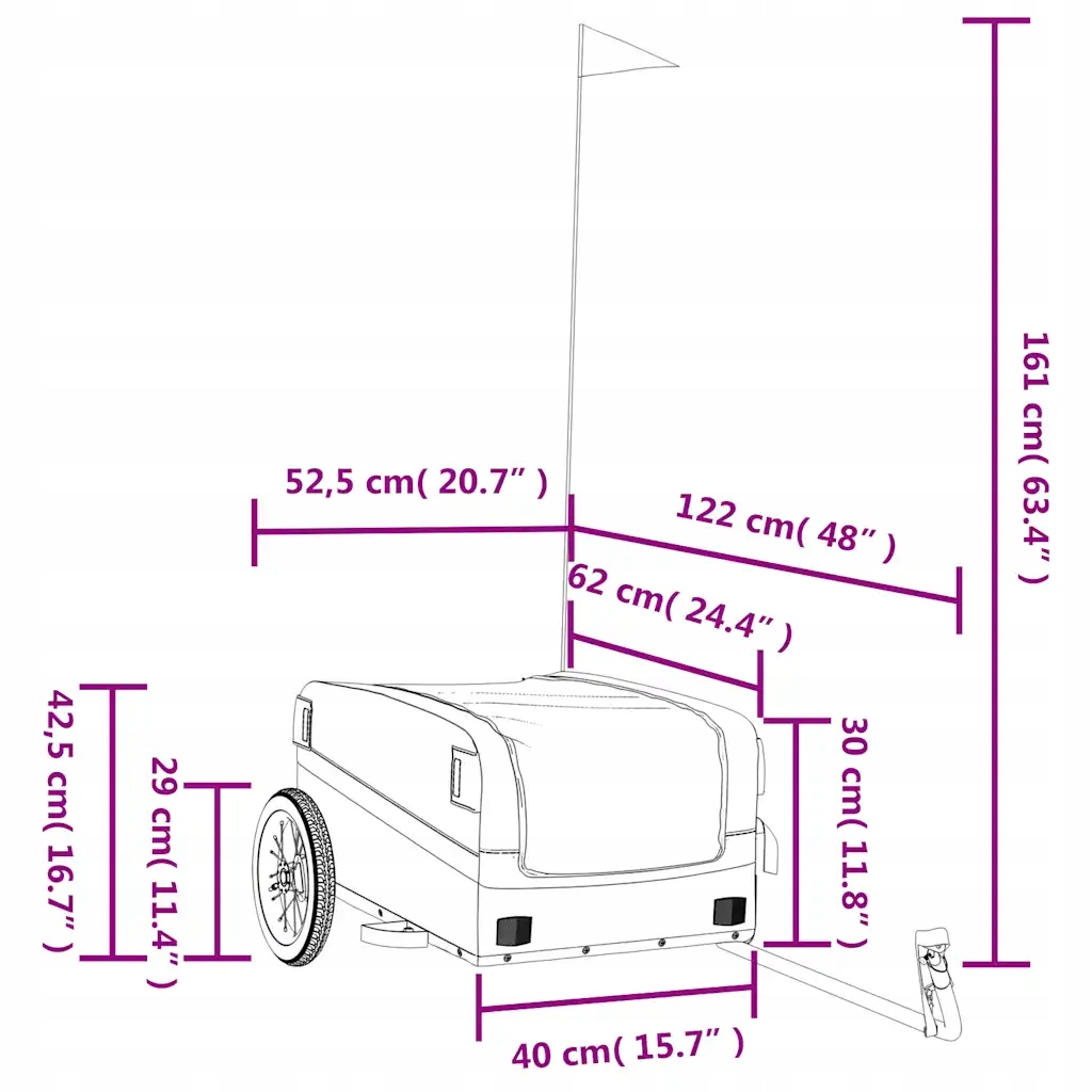 - Продумана конструкція: обладнано буксирним кріпленням для легкого кріплення до велосипеда та прапорцем безпеки для покращення видимість.