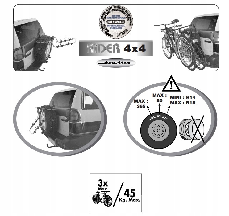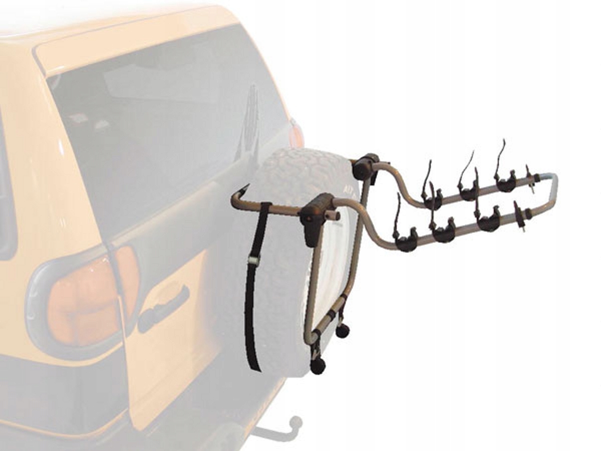 Велотримач Rider 4x4 - це дуже гарне транспортне рішення для транспортування трьох велосипедів із запасним колесом, яке розміщується на дверях багажника позашляховиків і позашляховиків.