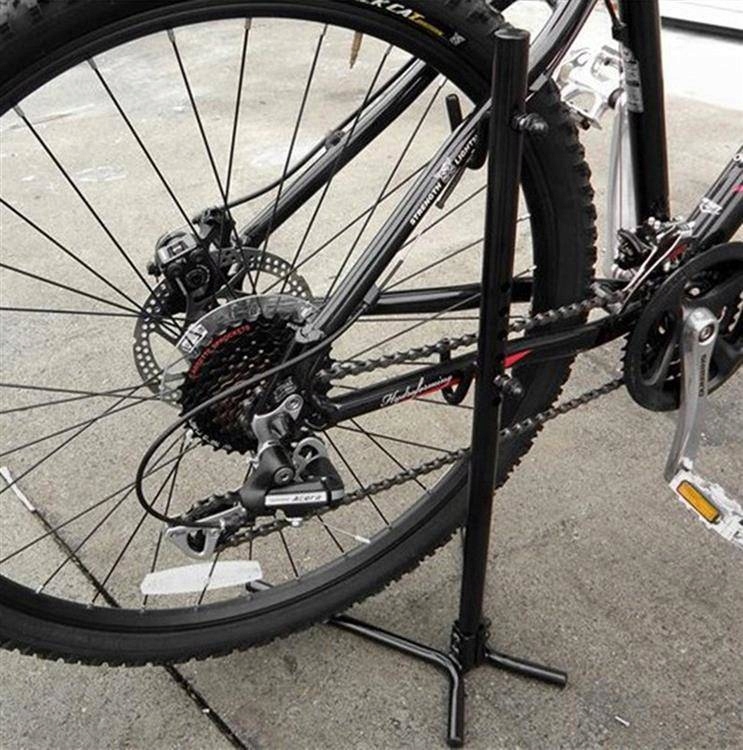 Велосипед, який стоїть на такій підставці, може вільно «крутити педалі», тому ви можете регулювати задню та передню частину колеса на ньому перемикач і встановіть гальмо.