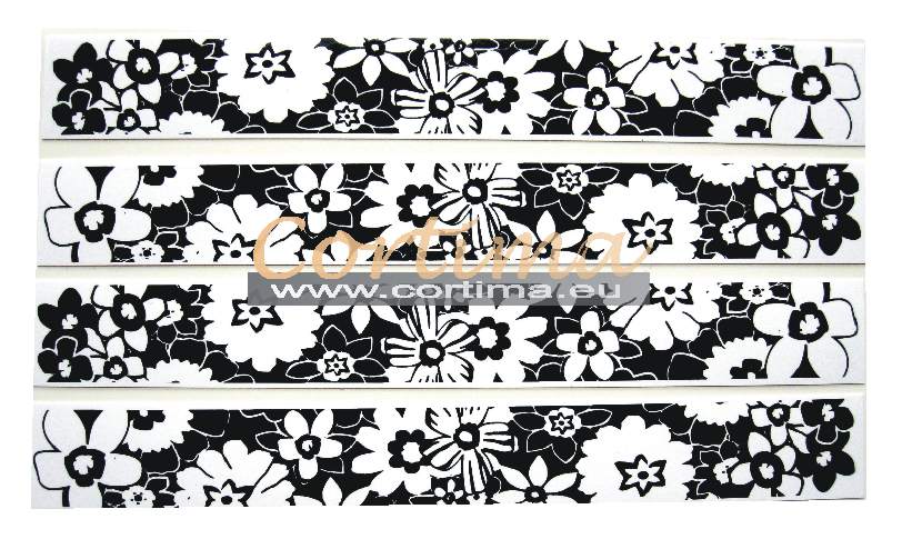 У набір входить 5 наклейок розміром 2,5 см х 20 см. Щоб обклеїти всі крила велосипеда з колесами 28", потрібно два комплекти, тобто 10 наклейок. Наклейки надруковані на білій фользі. Вони чудово виглядають на крилах чорного, сріблястого або білого кольору. Після з'єднання наклейки складають одне ціле ( один візерунок). Їх також можна використовувати для покриття інших частин велосипеда.