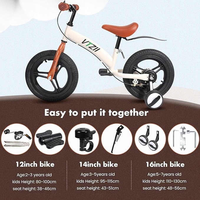 Велосипед 2 в 1 12 дюймів, білі педалі колеса VTZII і гальмо