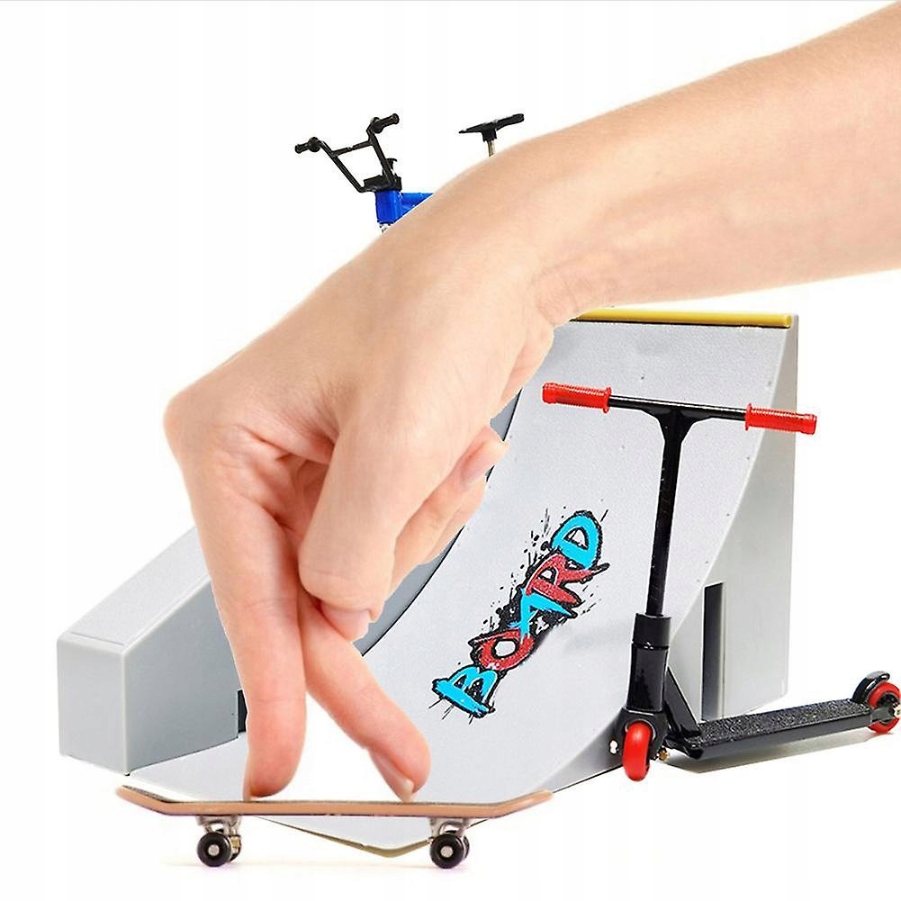 Набір містить міні-скейтборд, який називається фінгерборд, у різних дизайнах. Крім того, є ЖОВТИЙ пальчиковий велосипед. Скейтборд упакований виробником у випадковому порядку. У набір BMX також входить гайковий ключ для можливого ремонту.