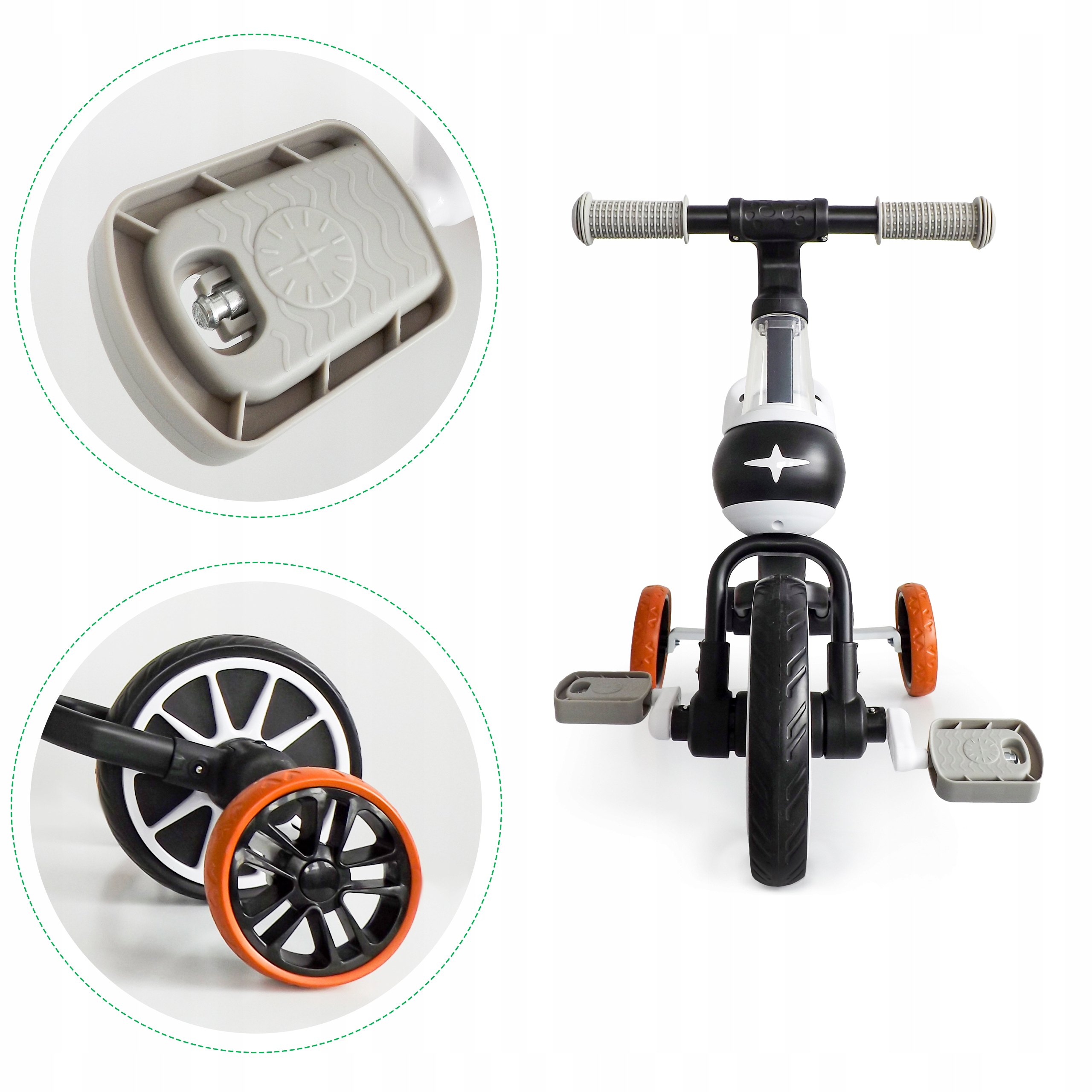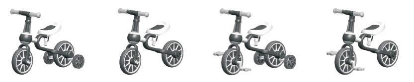 Спеціально розроблена конструкція велосипеда та регульована висота сидіннядозволяють адаптувати його функції до поточних потреб здібності дитини. Велосипед можна використовувати в 4 конфігураціях: