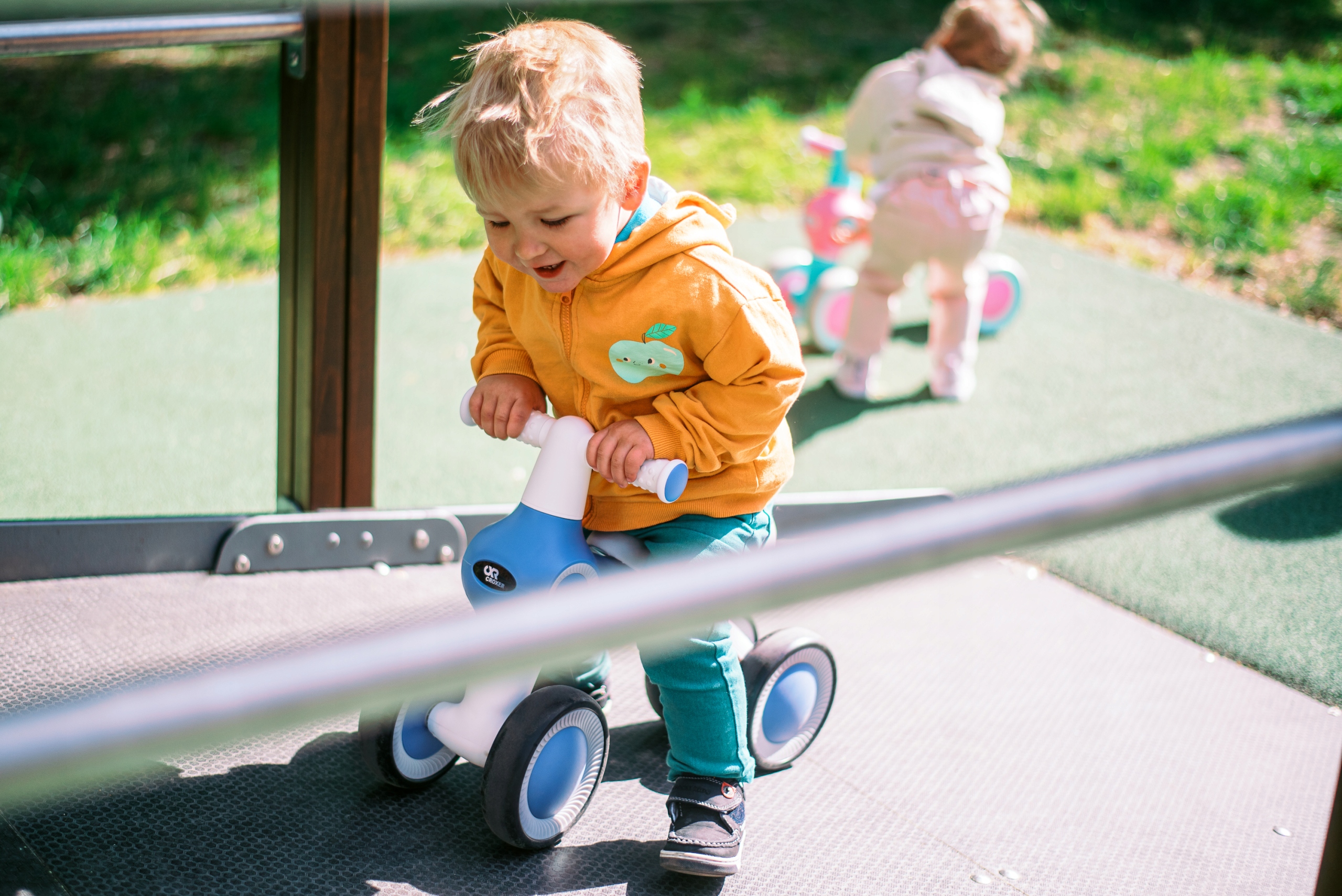 Чотири великі колеса роблять їзду на велосипеді безпечною, і вашій дитині не виникне проблем зі збереженням стійкості під час їзди. Розвиток почуття безпеки на початку користування велосипедами має вирішальне значення, щоб пізніше дитина могла легко продовжити навчання на велосипеді для балансування.
