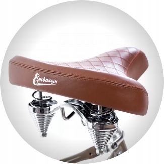 Стильний дизайн і бездоганна зовнішність - так, це ваш велосипед. Завдяки ретельно підібраним аксесуарам все поєднується. Підібране за кольором сідло, ручки та рама, а також увага до деталей роблять Embassy Cruisers унікальними. Зверніть увагу на кольори ліній або ободів. Будьте помічені, виділяйтеся та не відмовляйтеся від свого стилю під час їзди на велосипеді. Нехай стиль залишиться з вами!