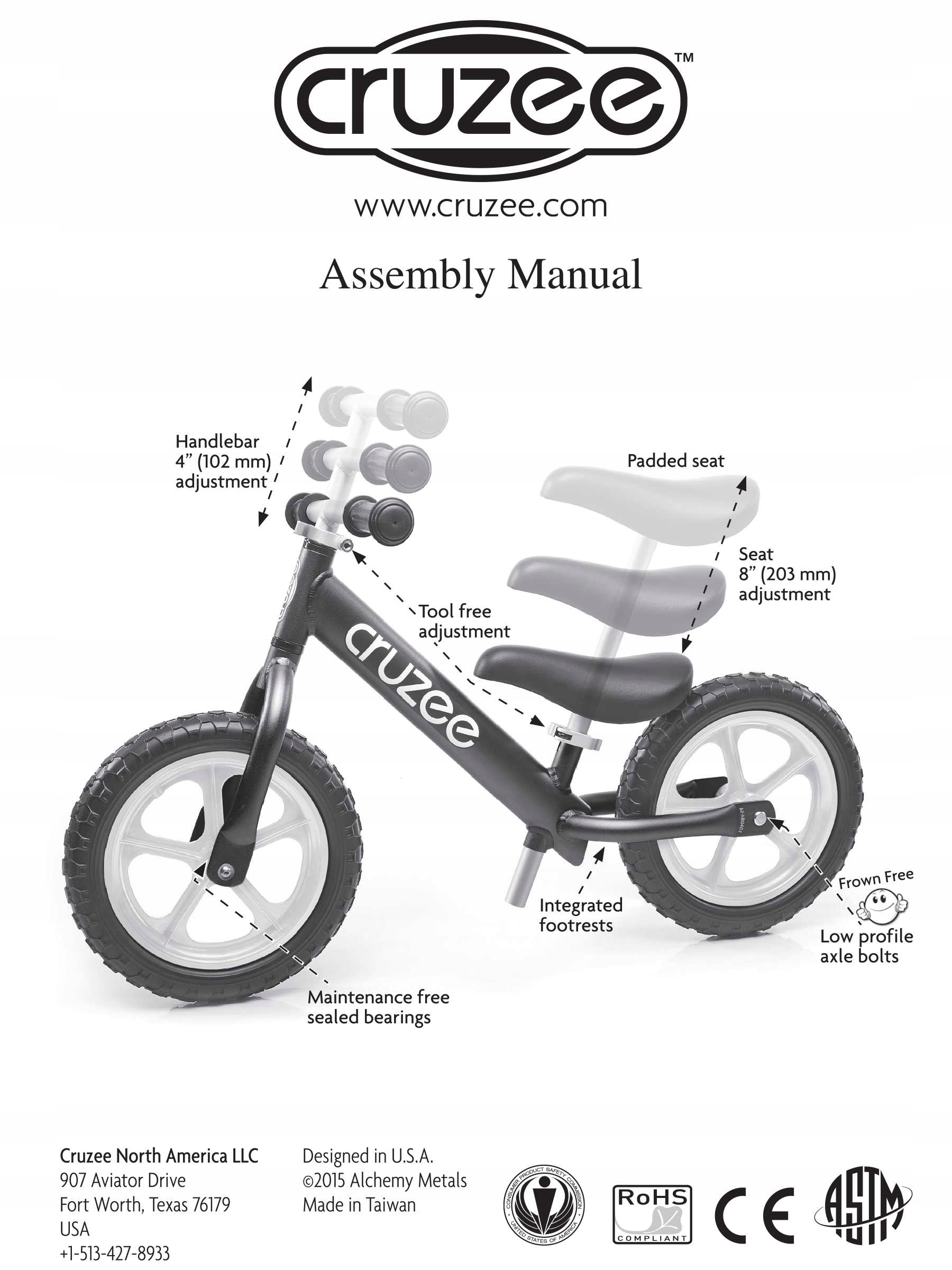 Створений для того, щоб рости разом з вашою дитиною, Cruzee має найширший доступний розмір регулювання – 9 дюймів регулювання сидіння та 5 дюймів регулювання керма – обидва вони регулюються без інструментів. Підходить для користувачів зростом від 60 см до 125 см або від 18 місяців до 5 років.