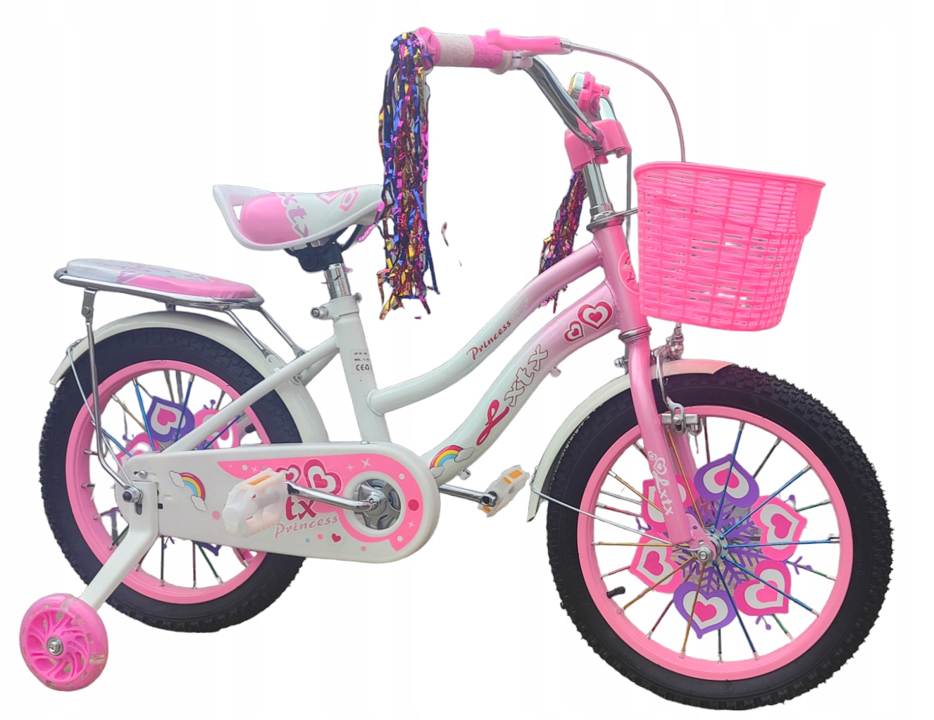 ВЕЛОСИПЕД ДИТЯЧИЙ 12 ДЮЙМОВ ДЛЯ ДІВЧИНКИ, БАГАЖНИК З КОЛЕСАМИ РОЖЕВИЙ
