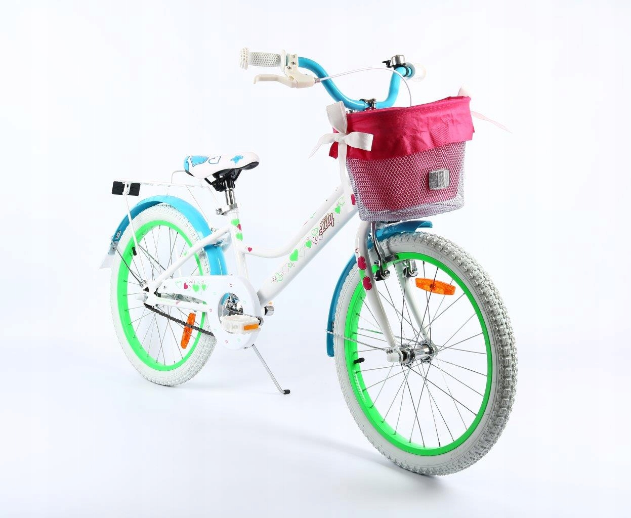 Лілі 20 -дюймовий дитячий велосипед -це відмінний вибір для дівчини у віці від 6 до 10 років. Оснащений кошик з вставкою, відбивачами, багажником, стопою та дзвоном, забезпечує комфорт, безпеку та радість водіння. Суцільна сталева рама та алюмінієва одиночна камерна обрізка.