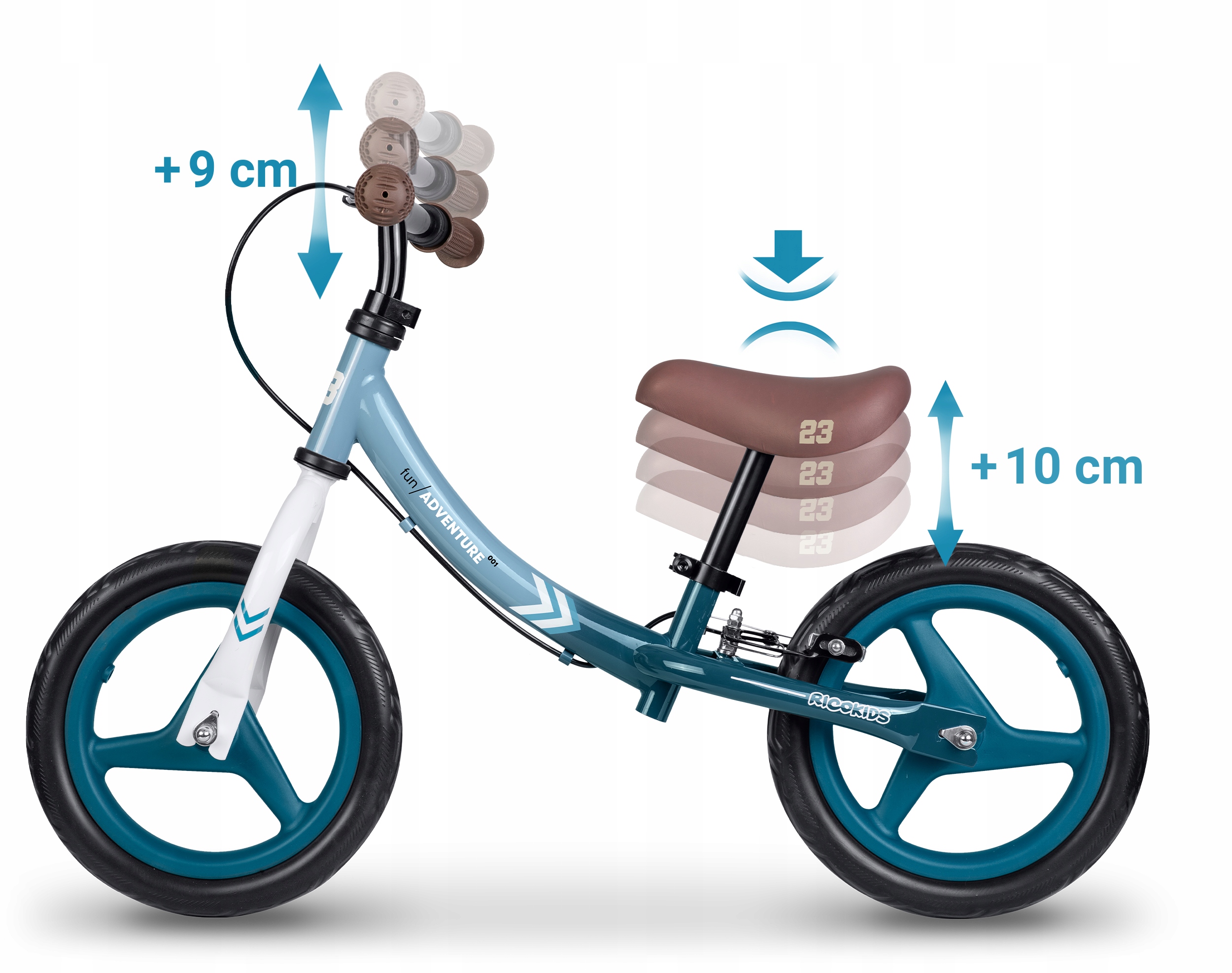 - Довший термін використання: можливість регулювати висоту сидіння до 10 см дозволяє адаптувати велосипед до змінного росту дитини, тому велосипед можна використовувати довше.