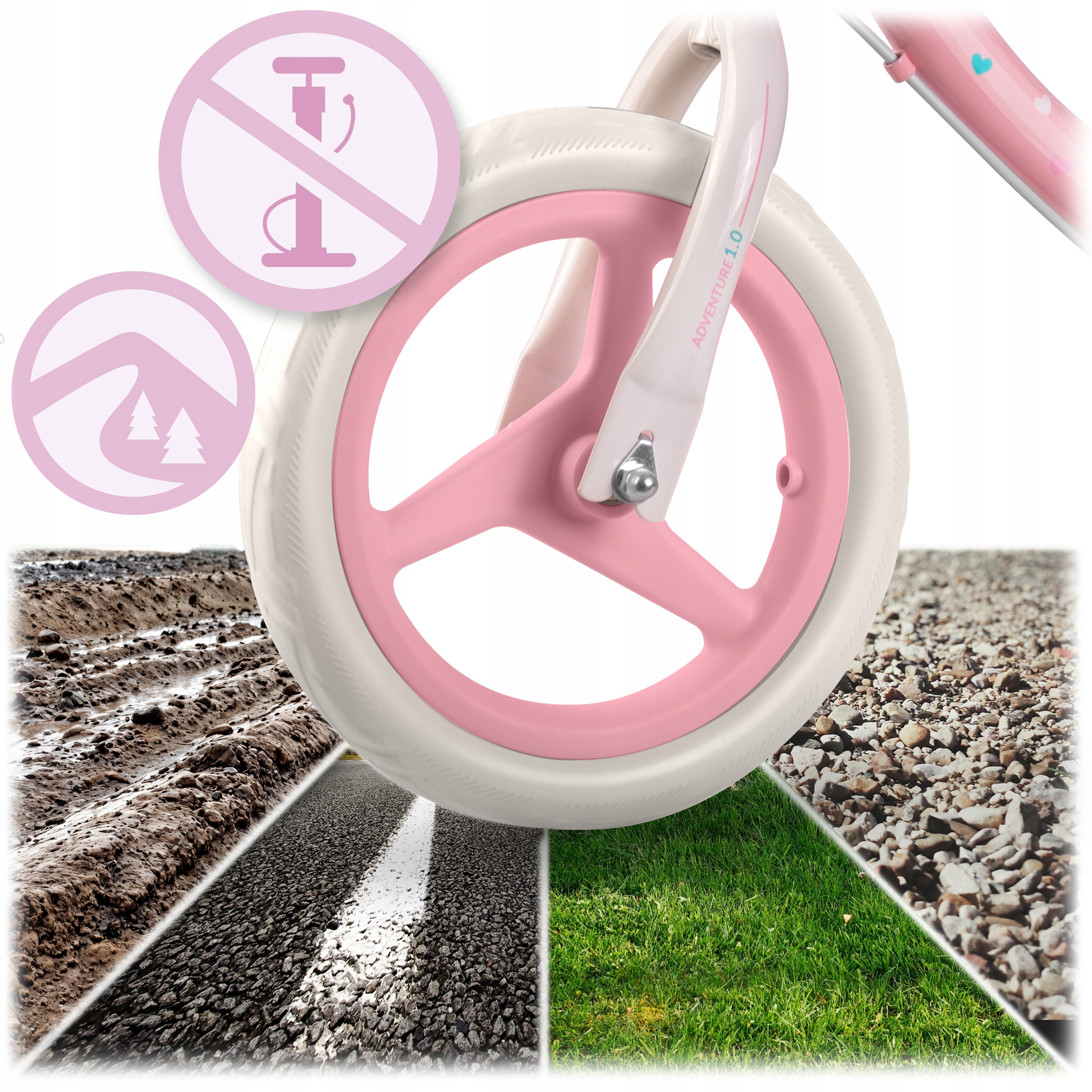 Незалежно від поверхні - трава, асфальт, пісок або грязь - пінопластові шини забезпечують проблеми -вільної, стабільної та зручної їзди. Нуль проколоті шини, не простої! EVA піна легко очистити, не поглинає бруд і добре зберігає вигляд, навіть після інтенсивного використання.