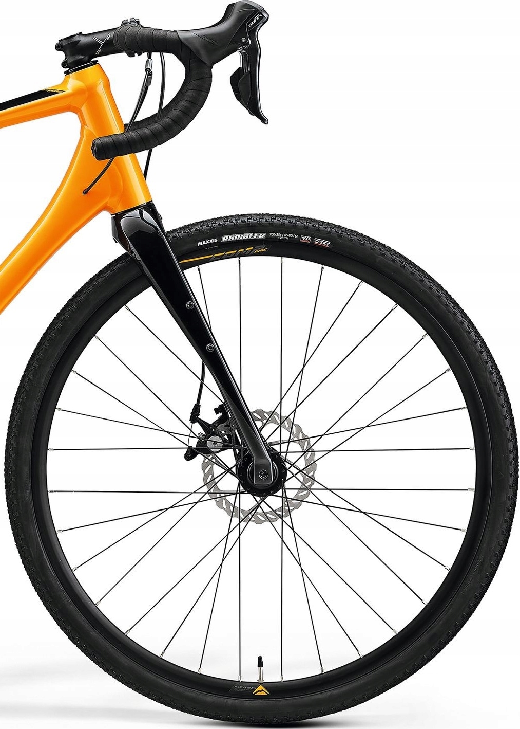 Високий комфорт їзди забезпечить геометрія рами та карбонова вилка. Точне керування завдяки звуженій головній трубі, а нижній кронштейн Press-Fit FSA PF86 забезпечує ефективну передачу потужності. Відповідний діапазон передавальних чисел (9x2) забезпечить вам привід Shimano Sora. Ви також можете покластися на легкі та міцні колеса Merida Comp SL, наскрізні осі 12 мм, компоненти Merida та шини Maxxis Rambler.