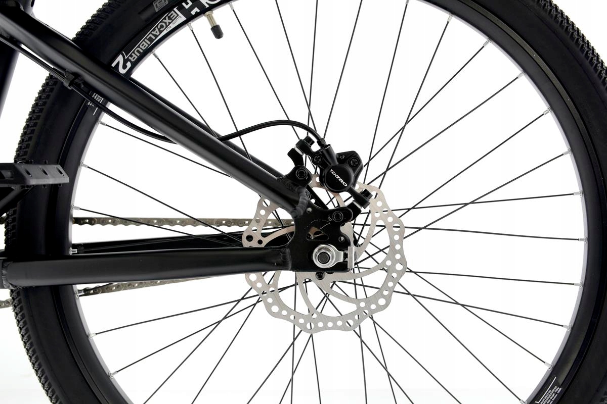 Велосипед обладнано гідравлічними дисковими гальмамиTektro, культовою вилкою для бруду RST DIRT із ходом 100 мм. Великою перевагою є суцільні колеса з дисками RODI EXCALIBUR DH і втулками з картриджними підшипниками.
