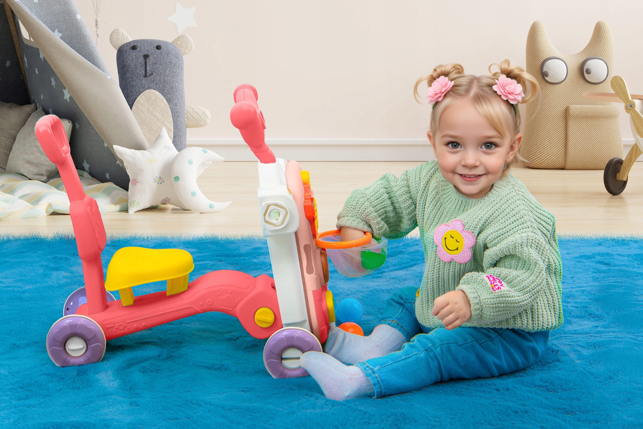 Ми представляємо іграшку 5 в 1 , ідеально підходить для маленьких дослідників, які готові до великих пригод! Ця інноваційна іграшка стане не лише компаньйоном для перших кроків вашого малюка, а й воротами у світ освіти та творчих ігор. Пропонуючи п’ять різних функцій - велосипед, штовхач, самокат, конячка-гойдалка та навчальний стіл - іграшка розроблена, щоб рости разом з вашим дитина дитина та адаптуватися до її мінливих потреб і навичок.