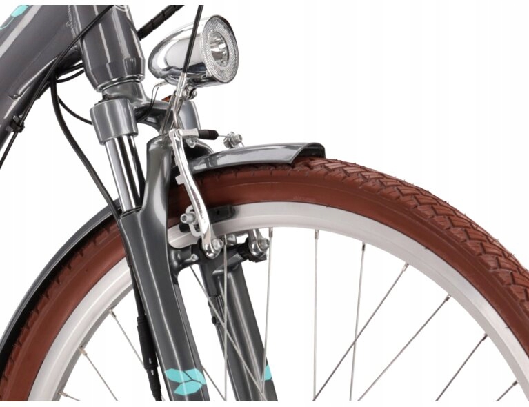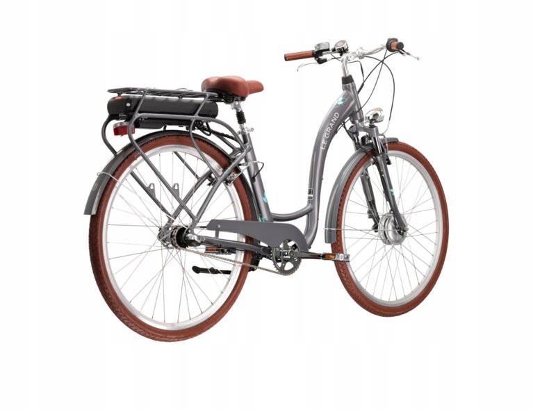 Le Grand eLille 1 — це легка алюмінієва рама, оснащена амортизаційною вилкою, яка полегшить долання нерівних поверхонь, таких як бордюри або виступаюча бруківка на велосипедних доріжках. Втулковий перемикач Shimano Nexus має 3 передачі, а V-brake допомагають зупинятися за будь-яких умов. Великі 28-дюймові колеса з широкими шинами допомагають велосипеду легко котитися.