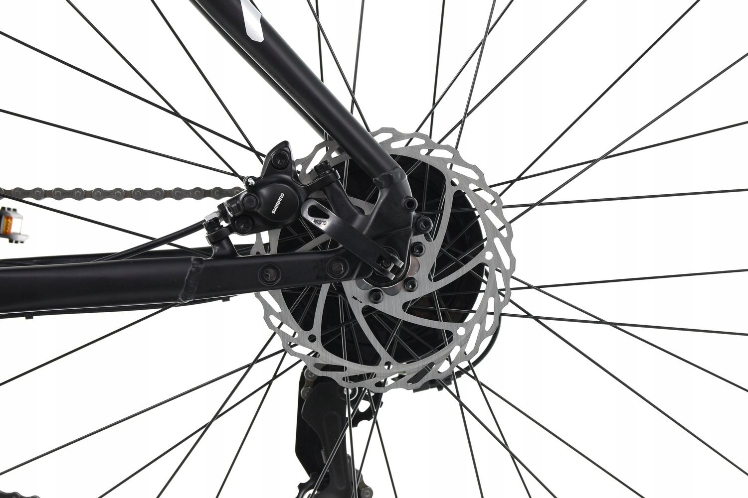 Задній трикутник рами має універсальні отвори для міцної установки підставки з відстанню гвинтів 40 мм(ви знайдете ідеальну підставку на наших аукціонах). Додатково рама з різьбленням для кріплення багажника, бризковиків і пляшки з водою.