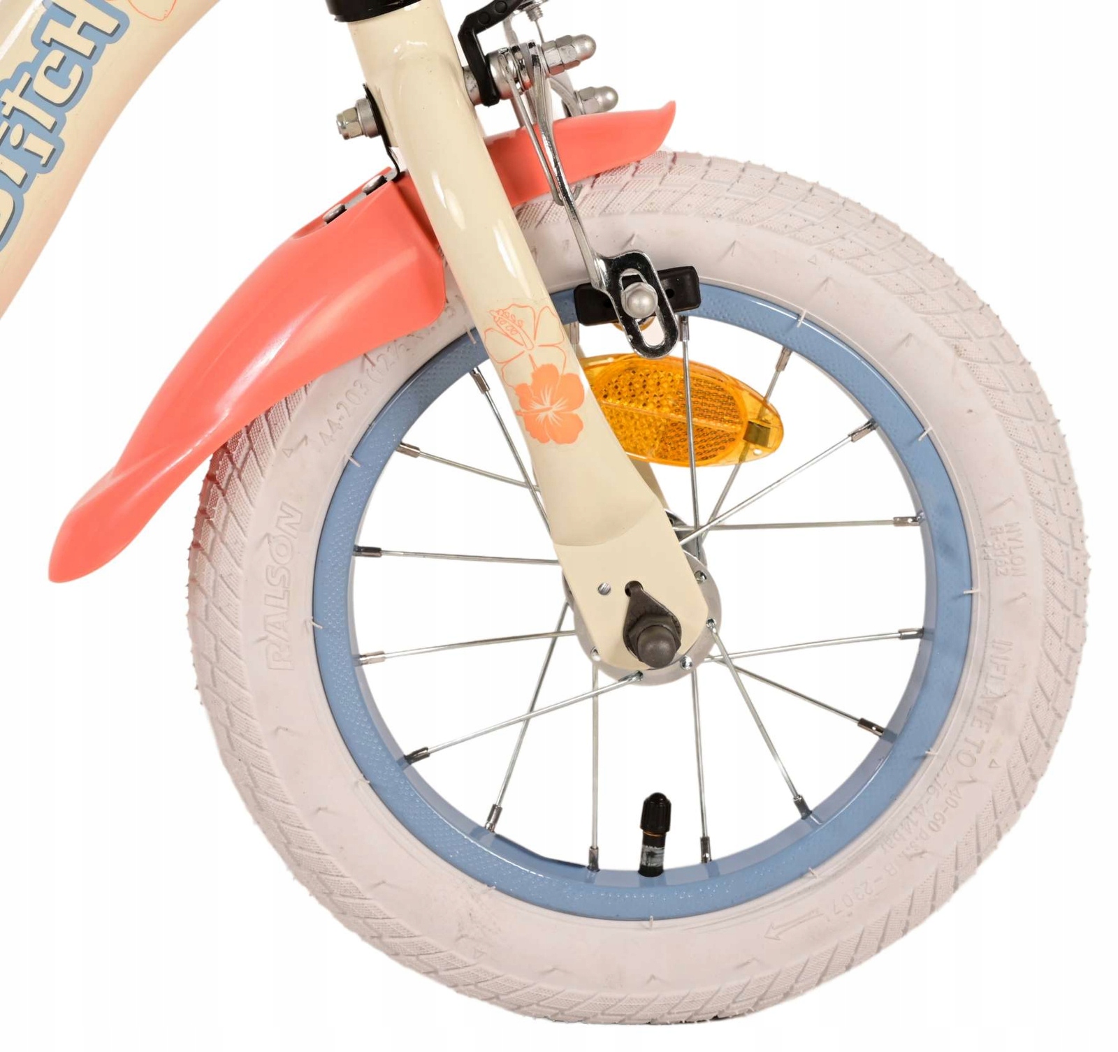 Безпека - найважливіша! Ось чому цей приємний велосипед має ручний гальмо і гальмо для ніг та знімні бічні колеса. Комфорт також думав. Красивий велосипед з вершками та тропічним стібком оснащений кошику. Щоб насолоджуватися велосипедом якомога довше, сідло та кермо мають регульовану висоту.