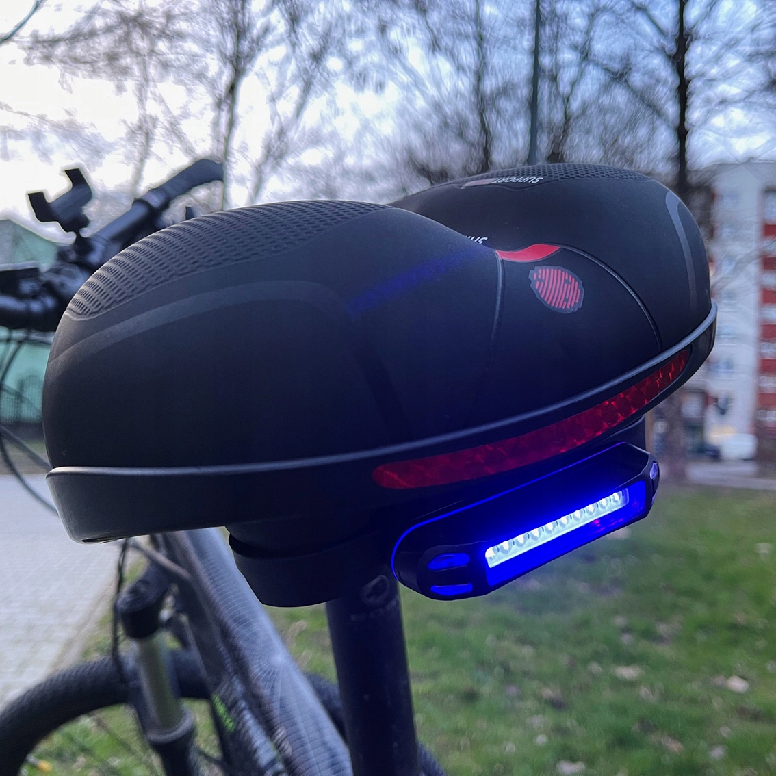 ЗРУЧНЕ СПОРТИВНЕ ВЕЛОСИПЕДНЕ СИДІННЯ, М'ЯКА ПІНА з відбивачем і додатковим LED-ліхтарем з 5 режимами освітлення
