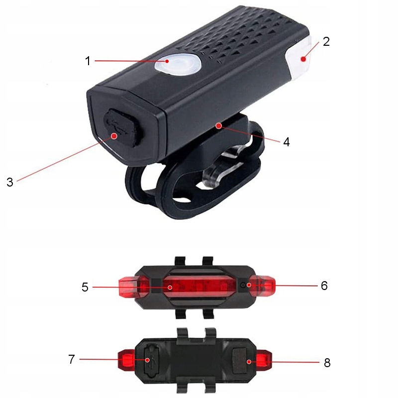 ВЕЛОСИПЕД СВІТЛОДІОДНИЙ СВІТЛО ПЕРЕДНІЙ + ЗАДНІЙ КОМПЛЕКТ