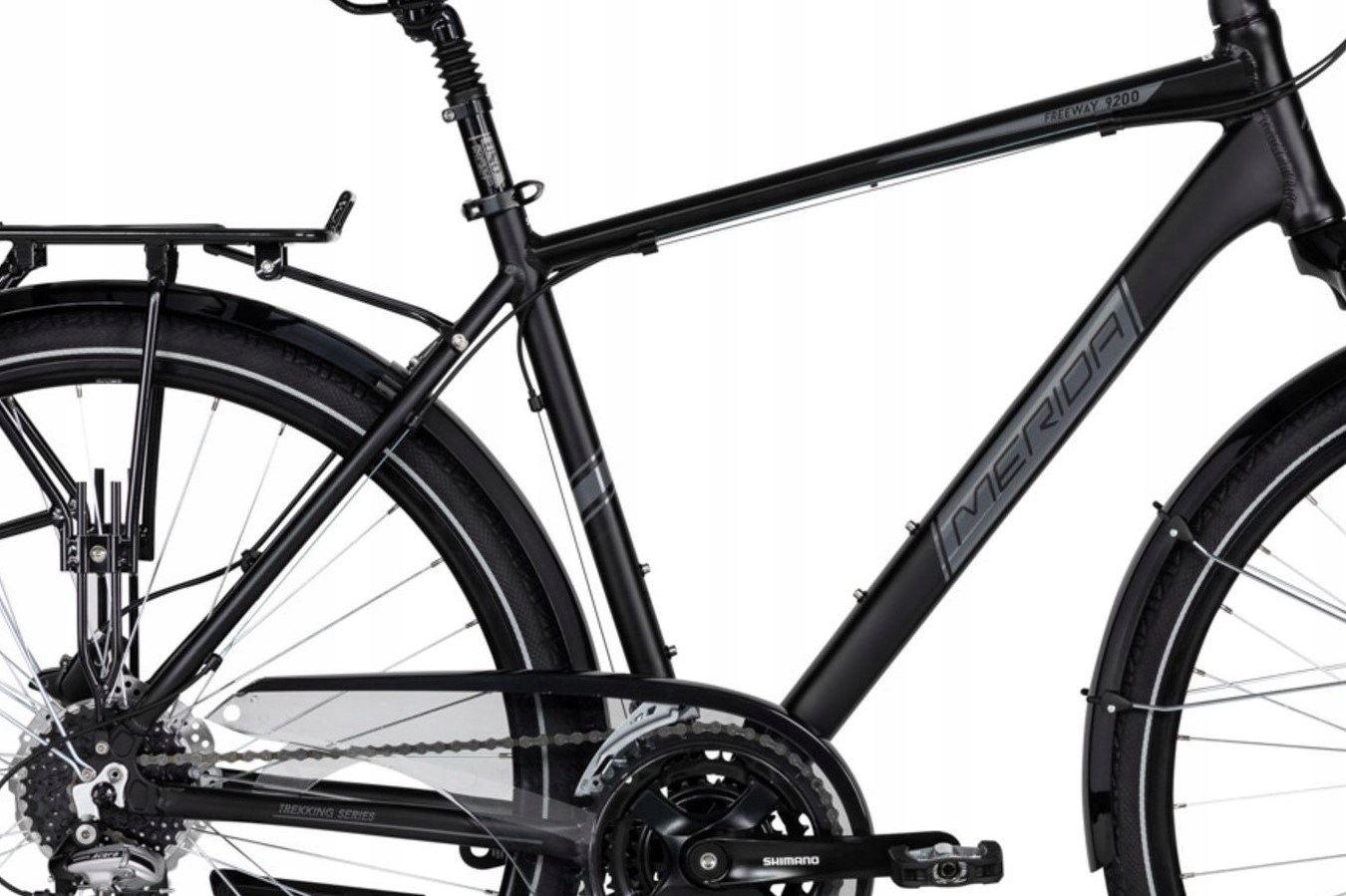Як під час тривалих подорожей, так і під час щоденних поїздок на роботу ви можете покластися на широке оснащення велосипеда, яке гарантує комфортну їзду. Він надається, серед іншого: Передній амортизатор SR Suntour NEX, амортизаційний підсідельний штир, ергономічне кермо з регульованою опорою, широкі шини CST з антипроколною вставкою та зручне сідло. Merida Freeway 9200 Disc має міцний багажний багажник, підставку, повні крила, кришку ланцюга та освітлення від акумулятора.