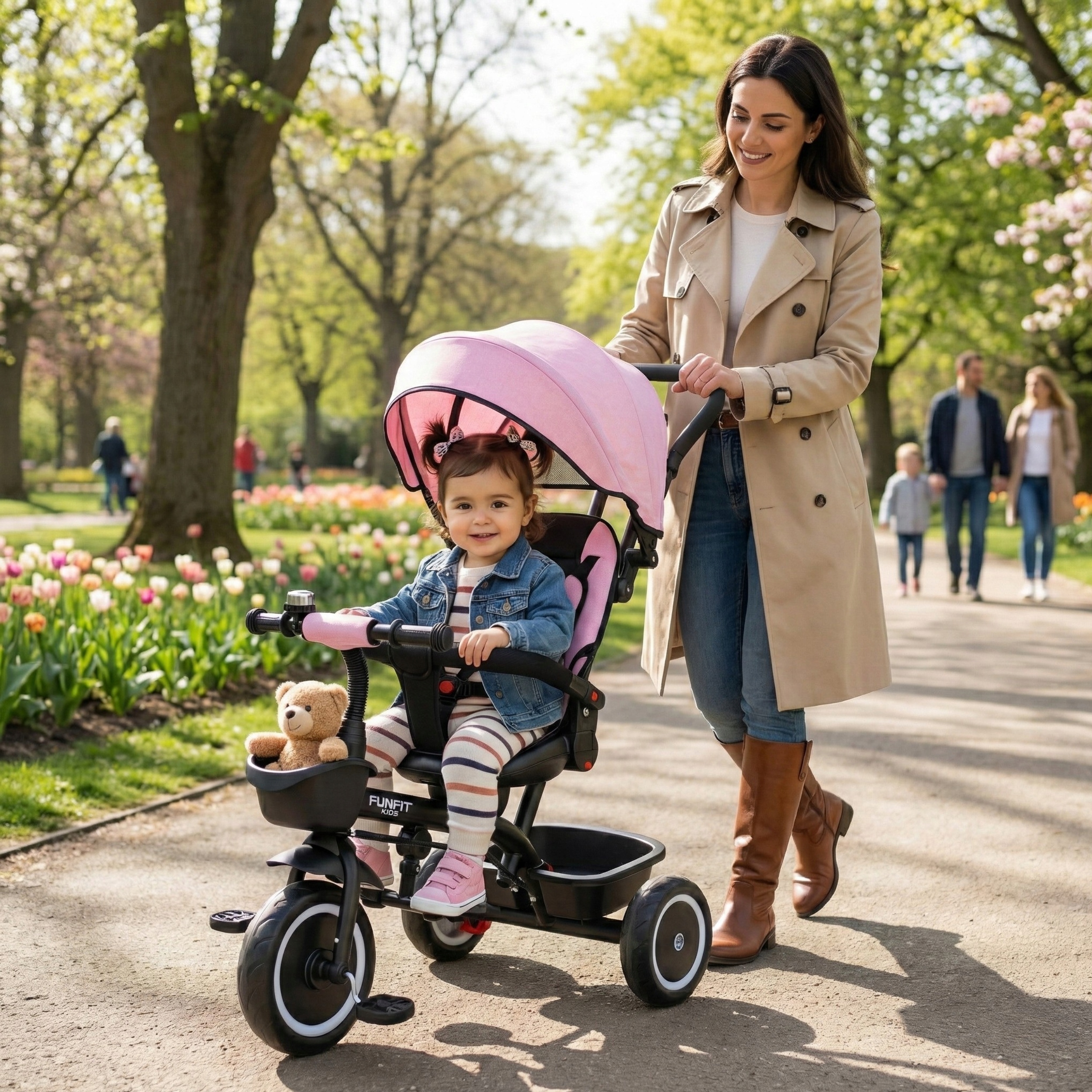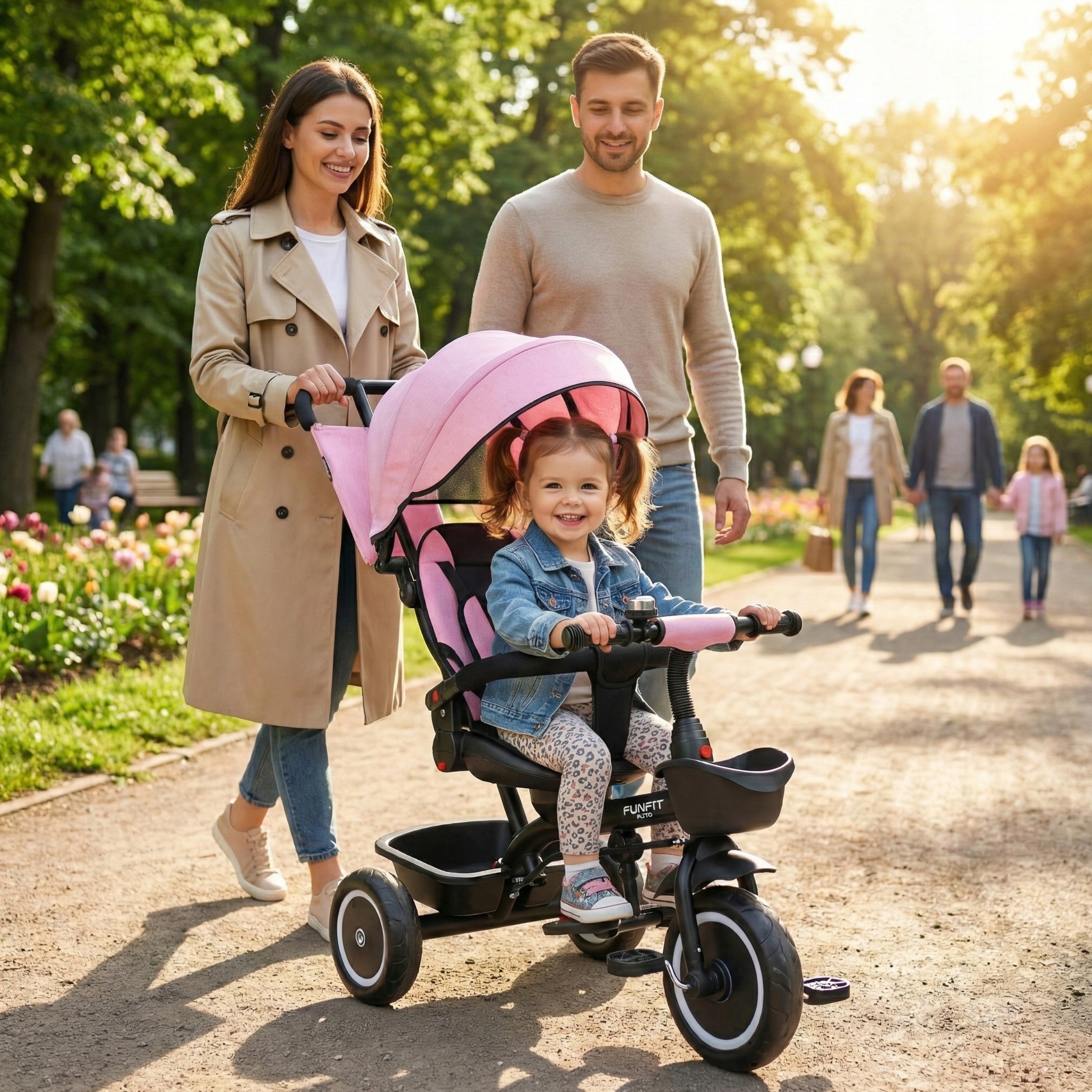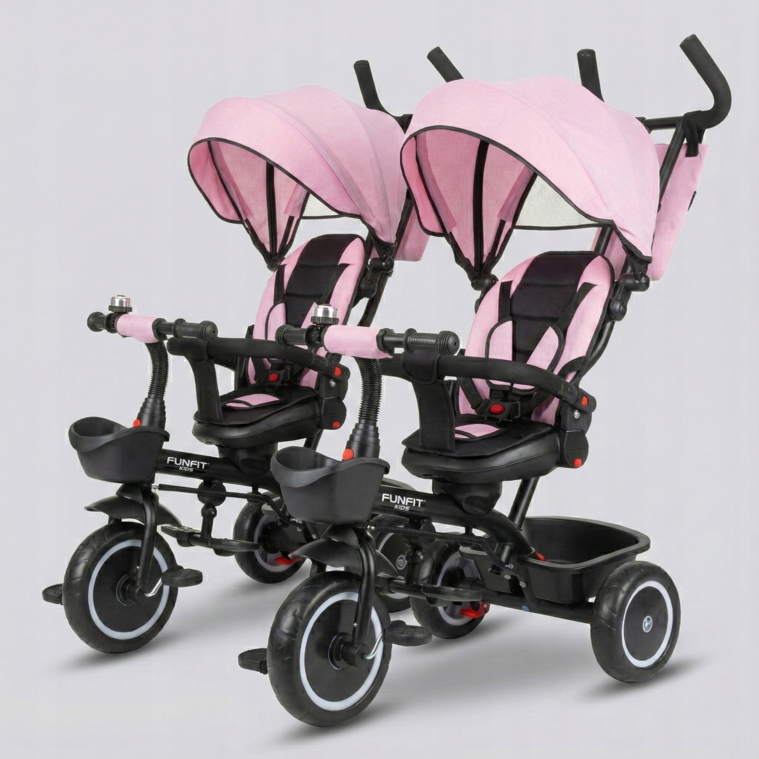 Триколісний велосипед FUNFIT 3 в 1 з навісом, штовхач Zippy + ДЗВІНОЧОК РОЖЕВИЙ
