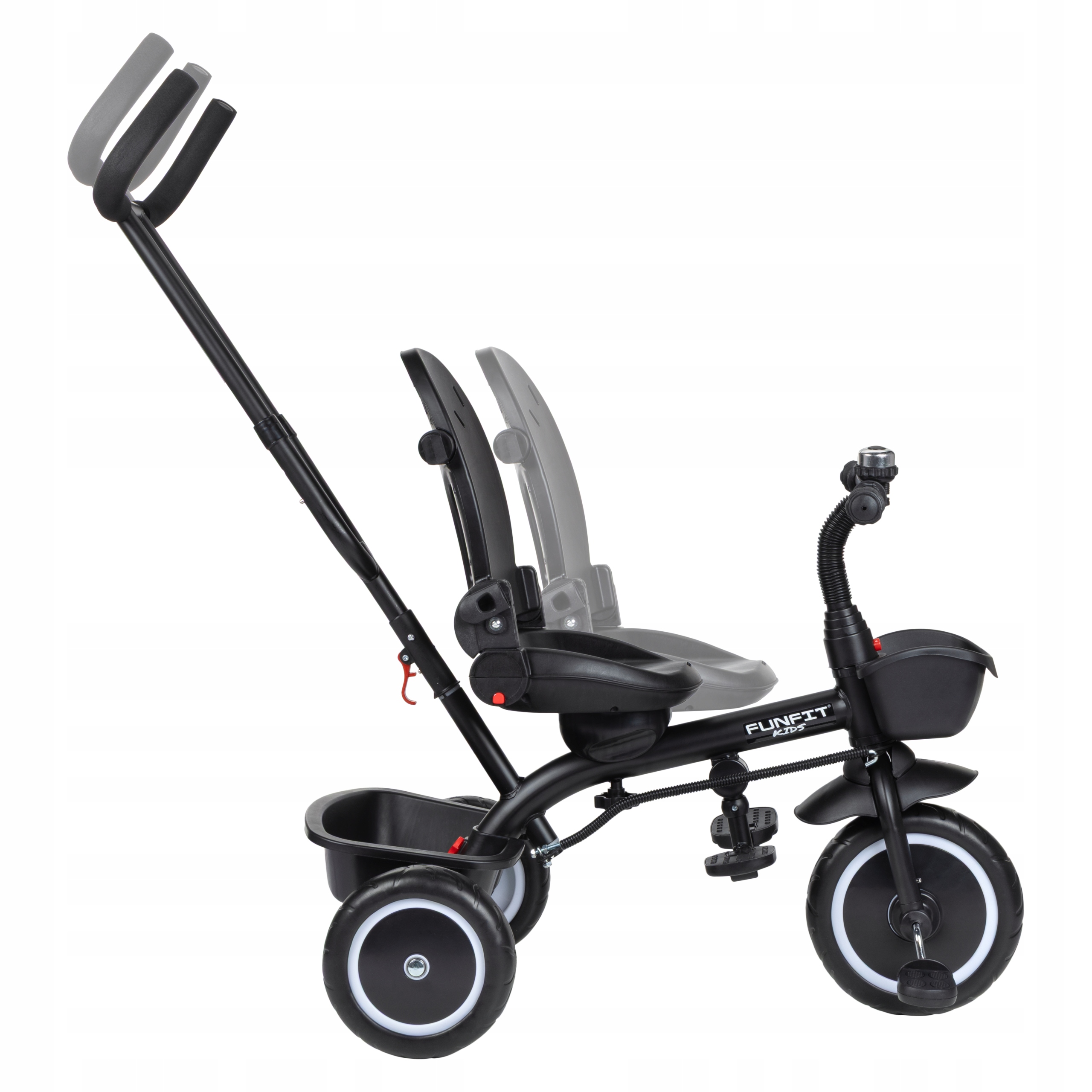 Триколісний велосипед FUNFIT KIDS - це ідеальне поєднання коляски та велосипеда в одному. Оснащений регульованою ручкою, він дозволяє батькам мати повний контроль над поїздкою дитини. Комфорт забезпечує м'яке поворотне сидіння з ременями безпеки та великий сонцезахисний навіс для захисту від сонця. Міцна конструкція гарантує стабільність і комфорт при їзді по різних поверхнях. Крім того, практичні кошики для аксесуарів дозволяють брати улюблені іграшки чи дрібнички на прогулянку.