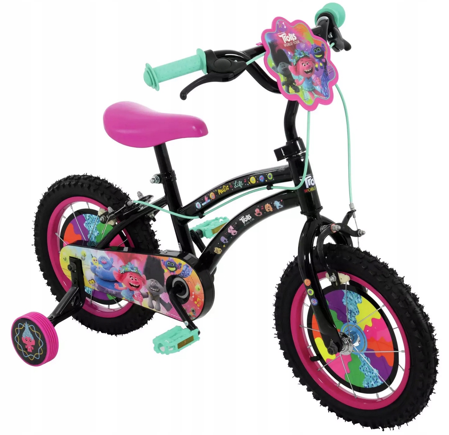 Пошуміть на цьому суперкрутому мотоциклі Trolls. Цей велосипед ідеально підходить для дітей, які близькі до освоєння їзди на двох колесах, оскільки він оснащений стійкими колесами, які легко знімаються. Колеса зі спицями та пневматичні шини з глибоким протектором забезпечують міцну, але комфортну їзду з відмінним зчепленням. Для додаткової безпеки кришка ланцюга повністю закрита, щоб уникнути небажаного заплутування, а велосипед має передні та задні ободні гальма, які дозволяють реактивно зупинятися завдяки легкодоступним ручним гальмам. І сидіння, і кермо можна відрегулювати по висоті відповідно до росту та впевненості дитини.