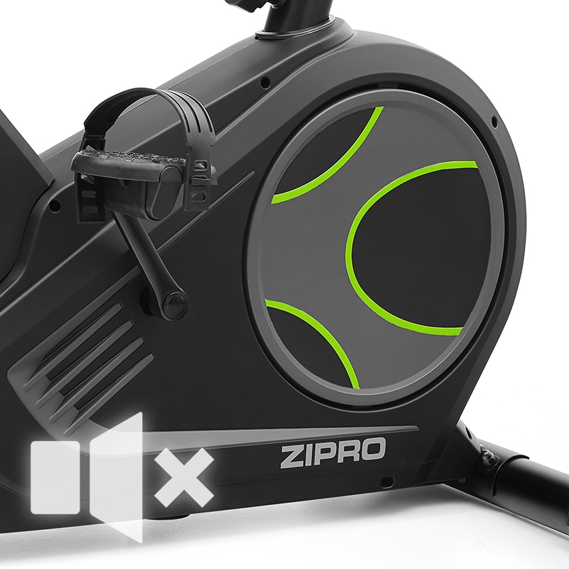 Система опору велосипеда з приводним ременем працює плавно і дуже тихо. Крім того, велосипед має звукоізоляційний чохол для системи опору.