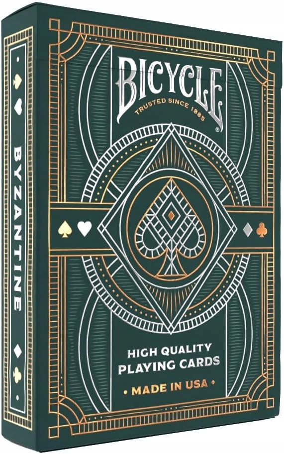 Вічні елегантні лінії заповнюють кожен дюйм колоди карт Bicycle Byzantine. Виведіть свою наступну ігрову ніч на новий рівень витонченості завдяки вражаючим золотим і срібним акцентам на упаковці та повністю персоналізованому дизайну лицьової сторони та задньої сторони.