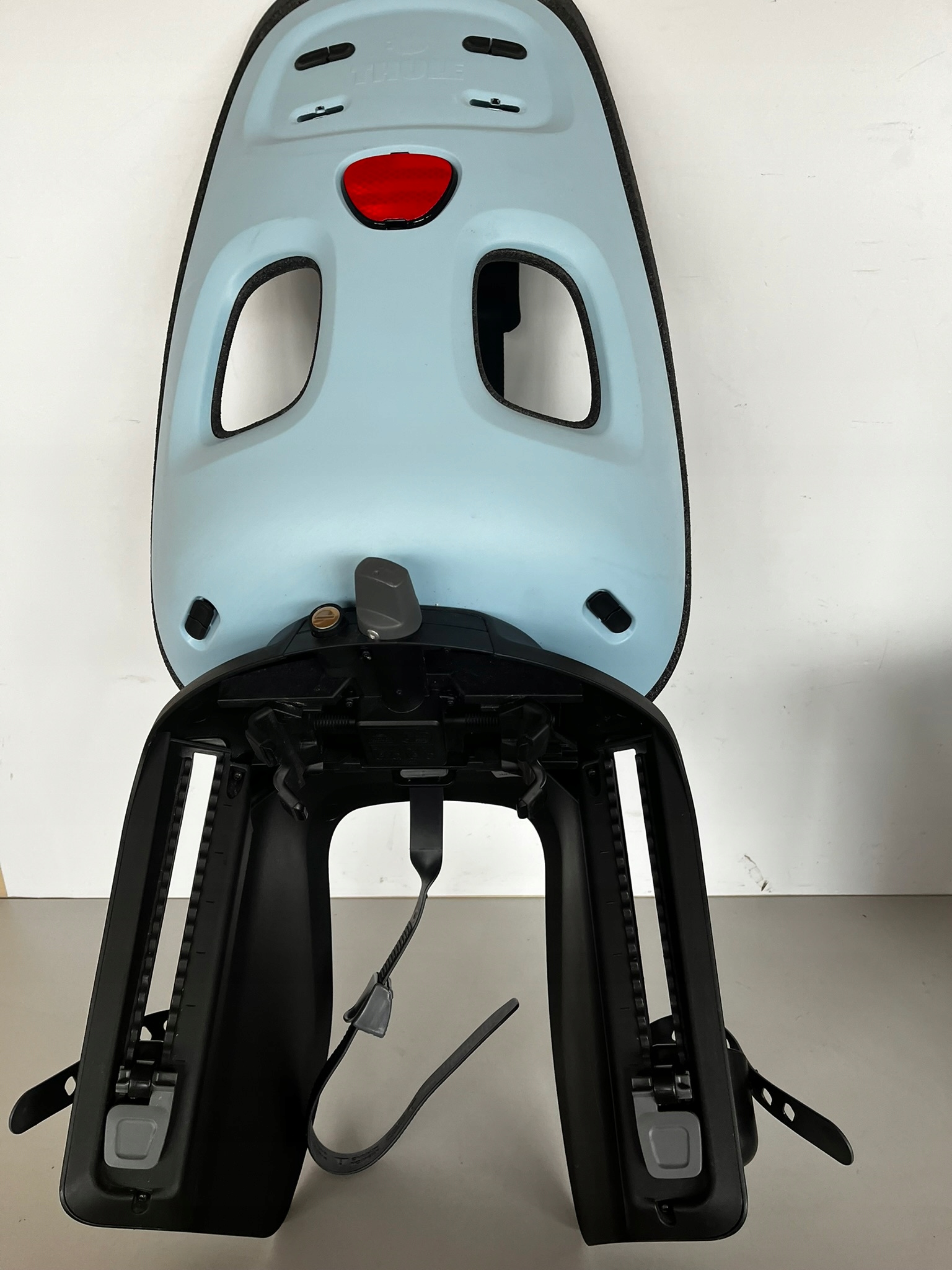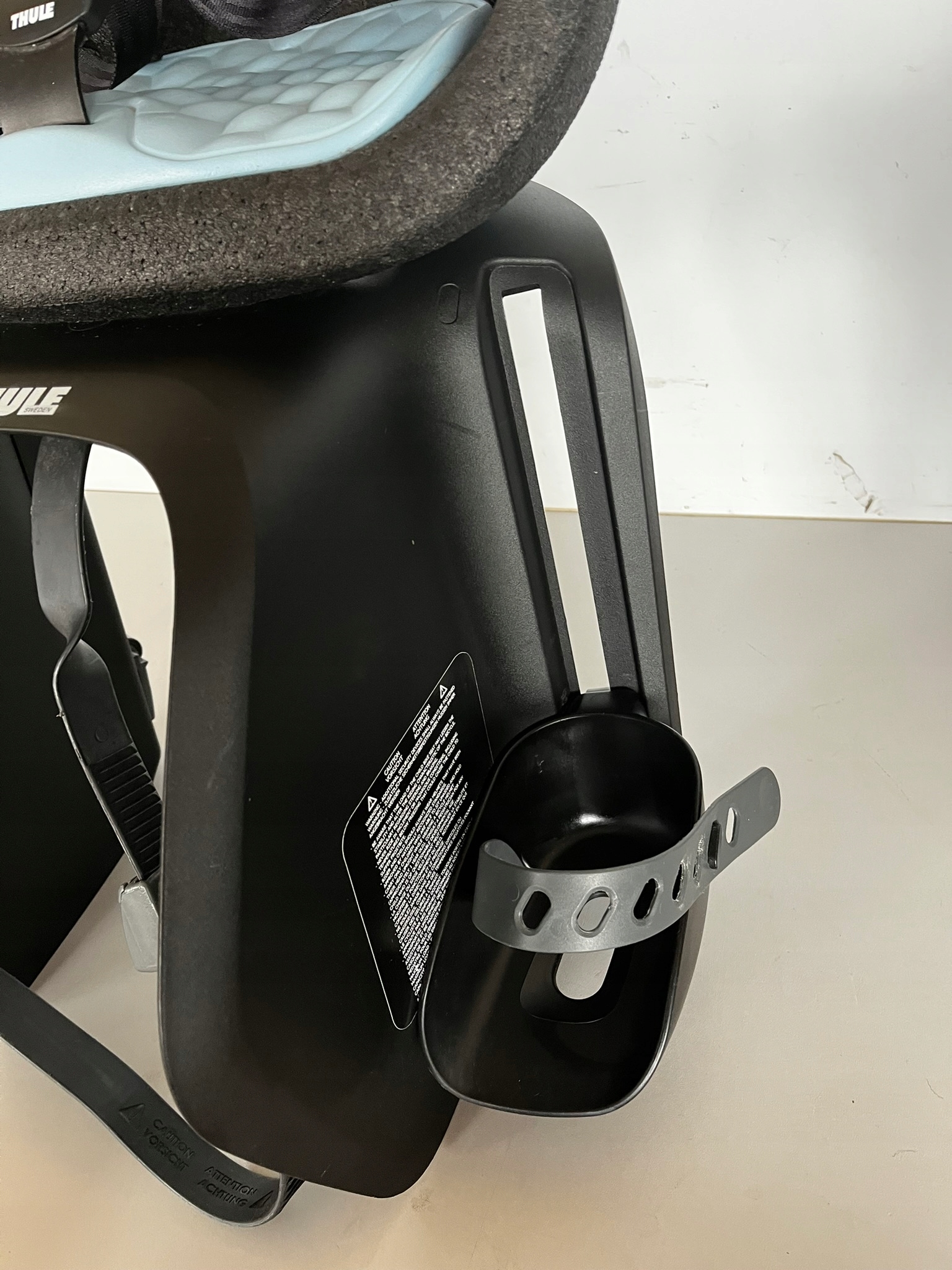 Дитяче крісло Yepp Nexxt Maxi Thule для велосипеда, встановлене на задній стійці.