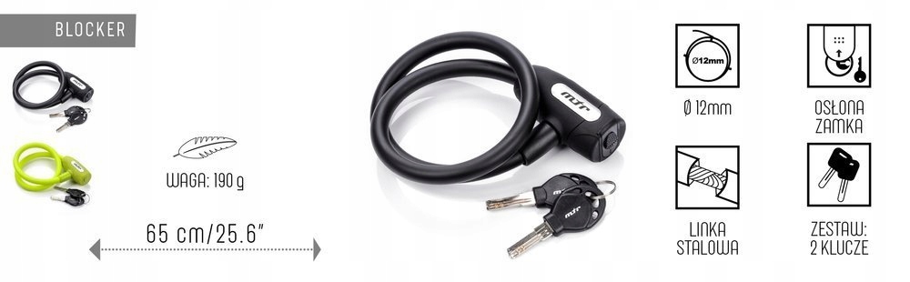 ВЕЛОСИПЕДНИЙ ЗАМОК METEOR, ТРОС З КЛЮЧЕМ, ЗАМОК 65 см, чорний