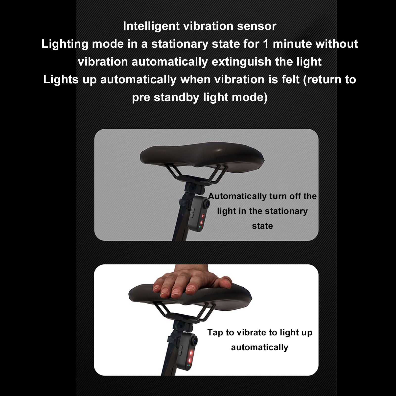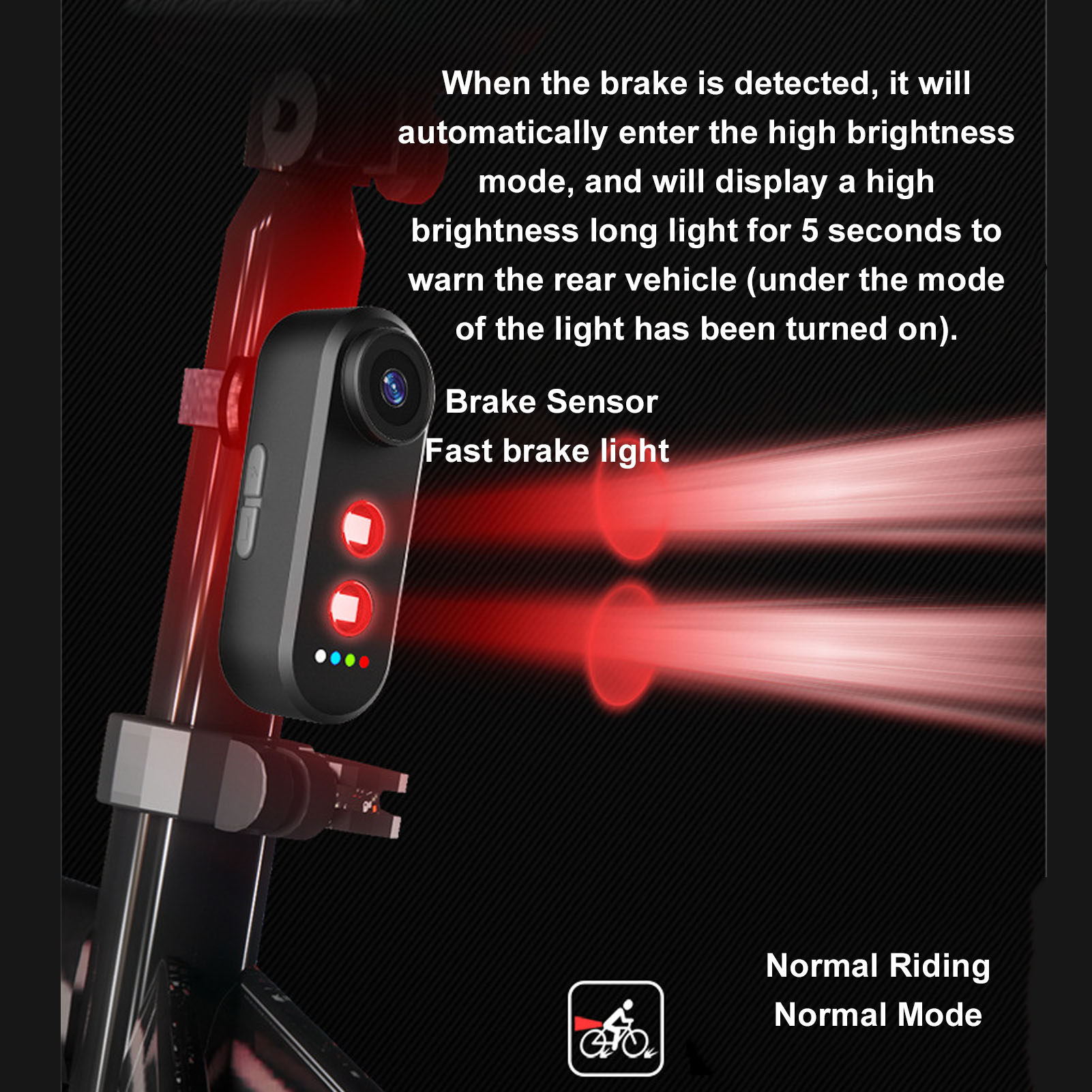 1. Автоматичний спалах при слабкому освітленні: велосипедна камера із заднім освітленням автоматично спалахує в умовах слабкого освітлення, забезпечуючи безпеку вашої їзди на велосипеді вночі. Завдяки шести регульованим режимам освітлення ви можете легко перемикатися на бажаний режим відповідно до ваших потреб.