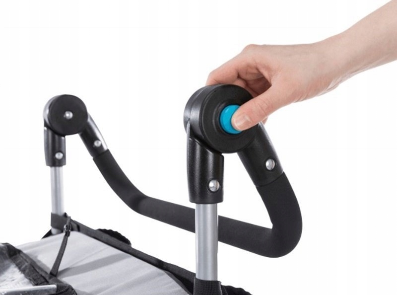 Причіп має ручку, що регулюється по горизонталі, що дозволяє регулювати висоту ручки відповідно до зросту людини, яка керує коляска.