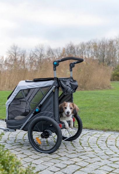 - причіп можна трансформувати у коляску (джоггер), встановивши "Trixie" Переднє колесо для причепа коляски для собак до 30 кг" код TX-12795 (товар не входить в комплект, але його можна придбати в нашому магазині.)