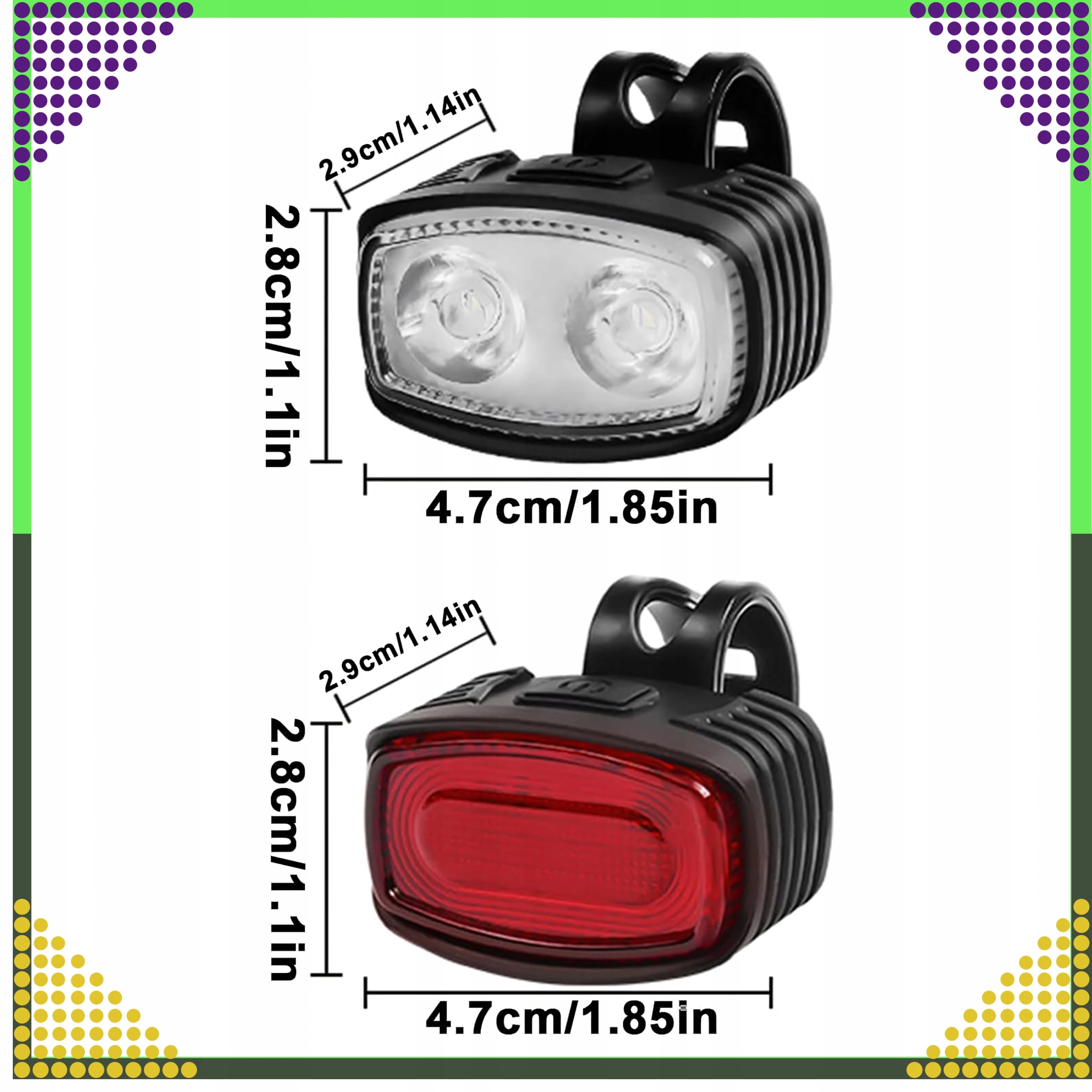 Затримка відставання переднього + Задній USB - Відмінне освітлення для кожного маршруту! і легке встановлення на рульовому колесі або на велосипеді. Лампи забезпечують максимальну видимість у будь -яких умовах. Встановіть роботу як на коротких, так і довгих маршрутах. /p>