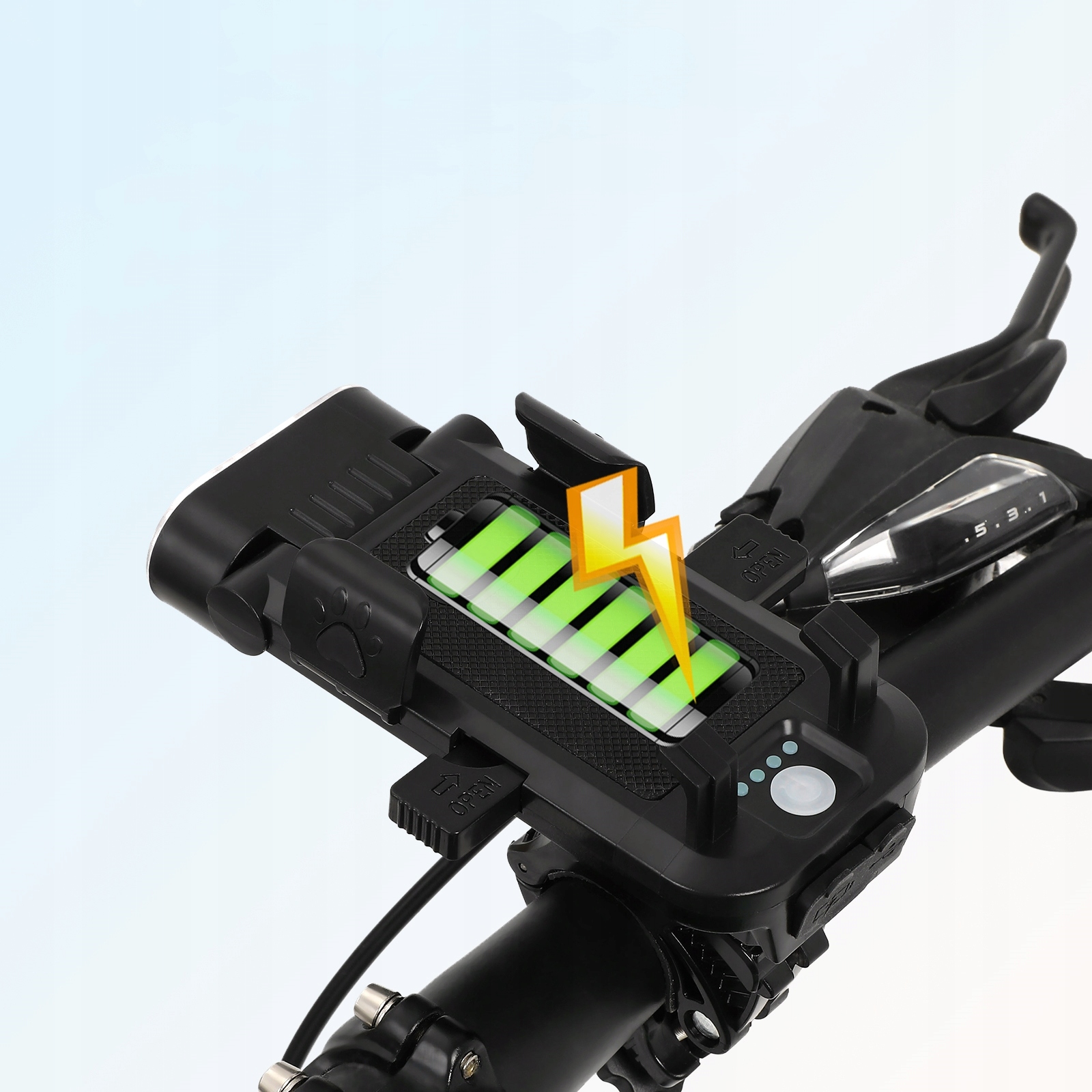 Інтегрує велосипедний ліхтар, тримач для телефону, гудок і блок живлення в один блок для неперевершеної зручності.