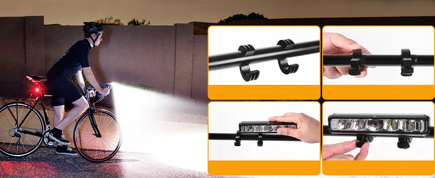 Акумуляторний ліхтар для велосипеда має 4 різні режими: ближнє світло, дальнє світло, повне світло та стробоскоп. Конструкція з антивідблиском може запобігти прямому попаданню променя світла в очі зустрічних людей. Крім того, надяскраві велосипедні ліхтарі оснащені вільними задніми ліхтарями для додаткової видимості та оптимальної безпеки на дорозі, захищаючи вас і ваш велосипед.