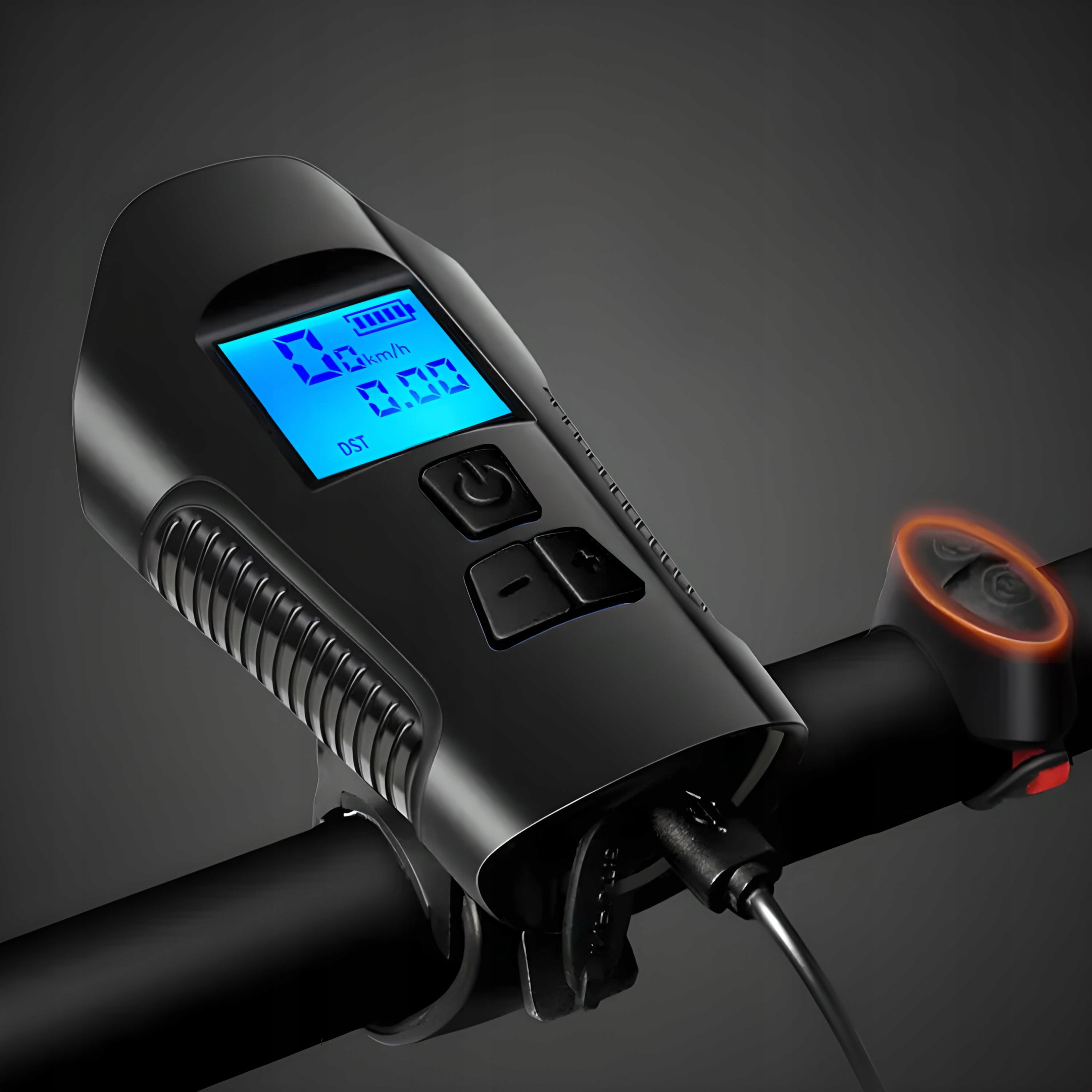ВОДОСТІЙКИЙ СВІТЛОДІОДНИЙ ЛІХАР ВЕЛОСИПЕДНИЙ USB ПЕРЕДНИЙ + ЛІЧИЛЬНИК + СПИДОМЕТР + ДЗВІНОК 5IN1