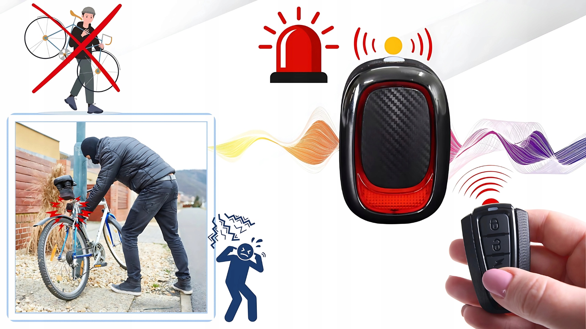 Після ввімкнення сигналізації за допомогою пульта дистанційного керування переміщення велосипеда спричиняє звучання сирени протягом 1 секунди, повторне переміщення активує сирену на 20 секунд, потім сигналізація знову вмикається, і коли велосипед пересувається, цикл повторюється.