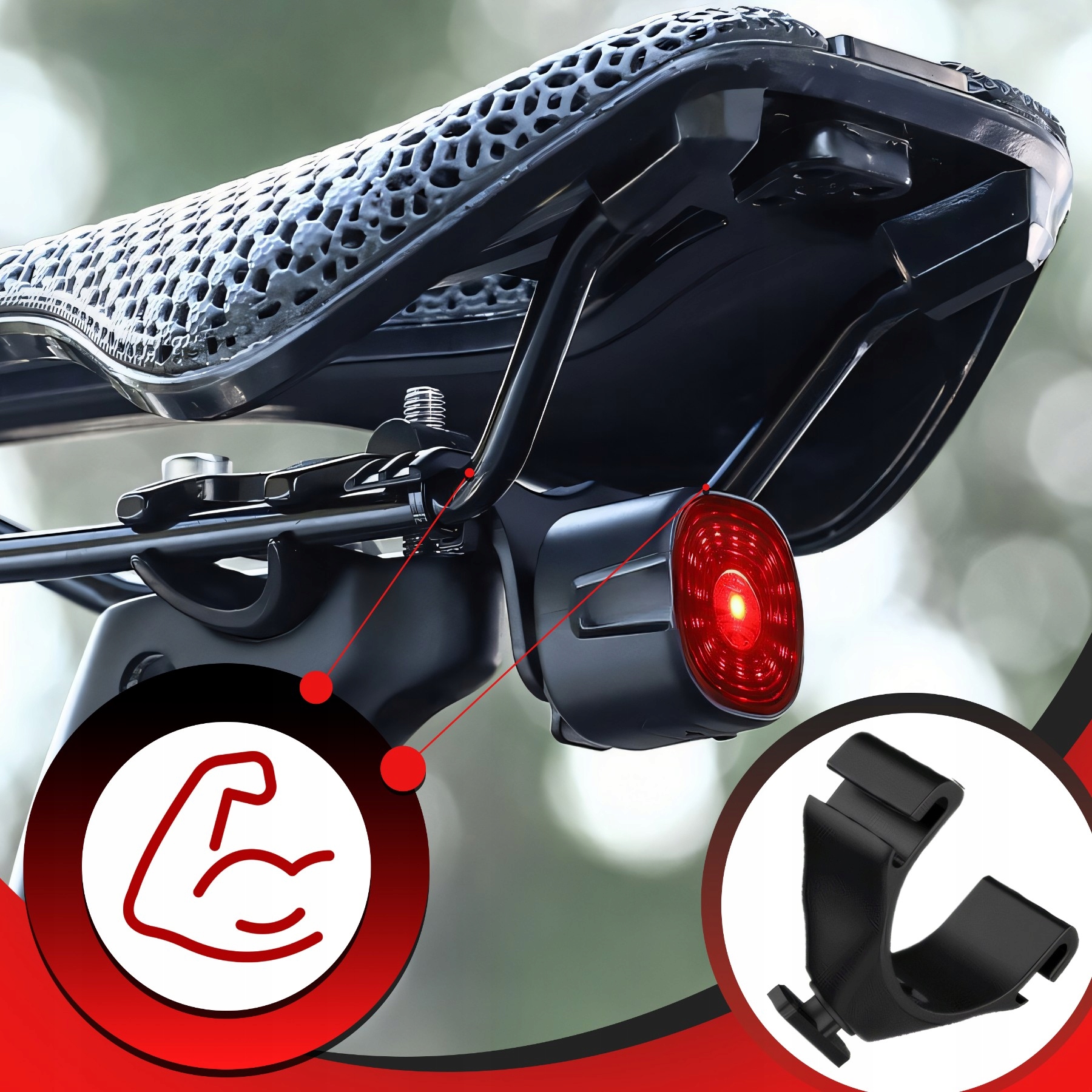 • Завдяки сильному світлодіодному освітленню та червоному кольору водії легко помітять вас навіть на великій відстані.