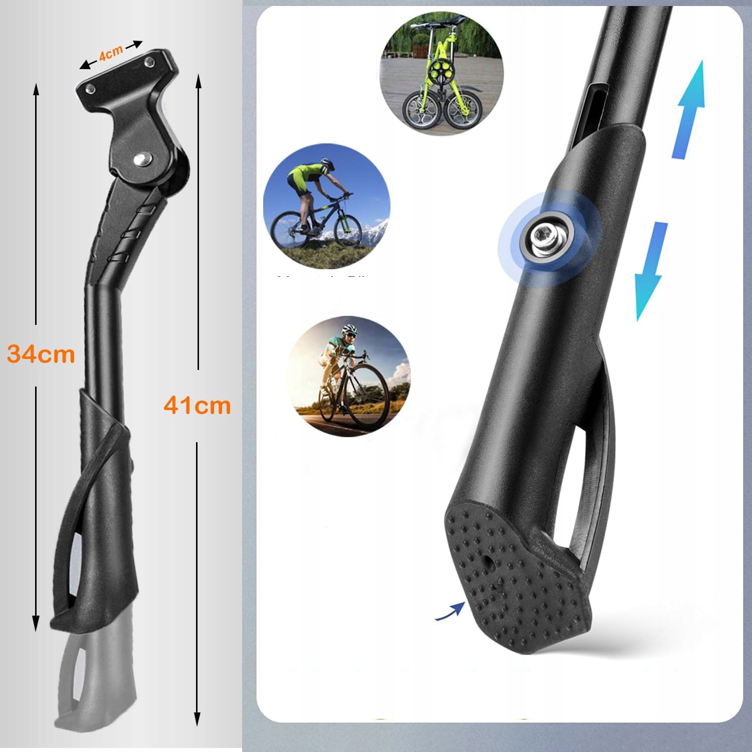🚲 【сумісна з велосипедами 24-28 дюймів】 велосипедна стійка може бути відрегульована в діапазоні від 34 до 41 см і підходить для 24-28 велосипедів, наприклад, гірських велосипедів, зокрема, зокрема для електричних велосипедів, а не для дитячих велосипедів. Примітка. Йдеться про середню ручку. Переконайтесь, що ваш велосипед оснащений круглою тарілкою з круглим отвором для складання підставки. Атмосферні фактори та бруд він стійкий до іржі та корозії.
