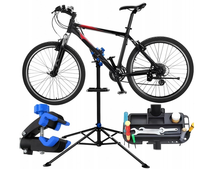 Практичний та ергономічний власник велосипедів - це ідеальне обладнання для всіх видів інспекцій та ремонту велосипеда. Ви набридли згинанням і відчуваєте біль у спині після ремонту, виконаного в незручних умовах? Ця сервісна стійка дозволить вам забути про це. Комфорт, який створює коригування висоти, є неоціненним, особливо для більш тривалих ремонтних робіт. Ви можете відрегулювати відповідну висоту та колісну базу підставки, що забезпечить кращий доступ до місць, що потребують обслуговування.