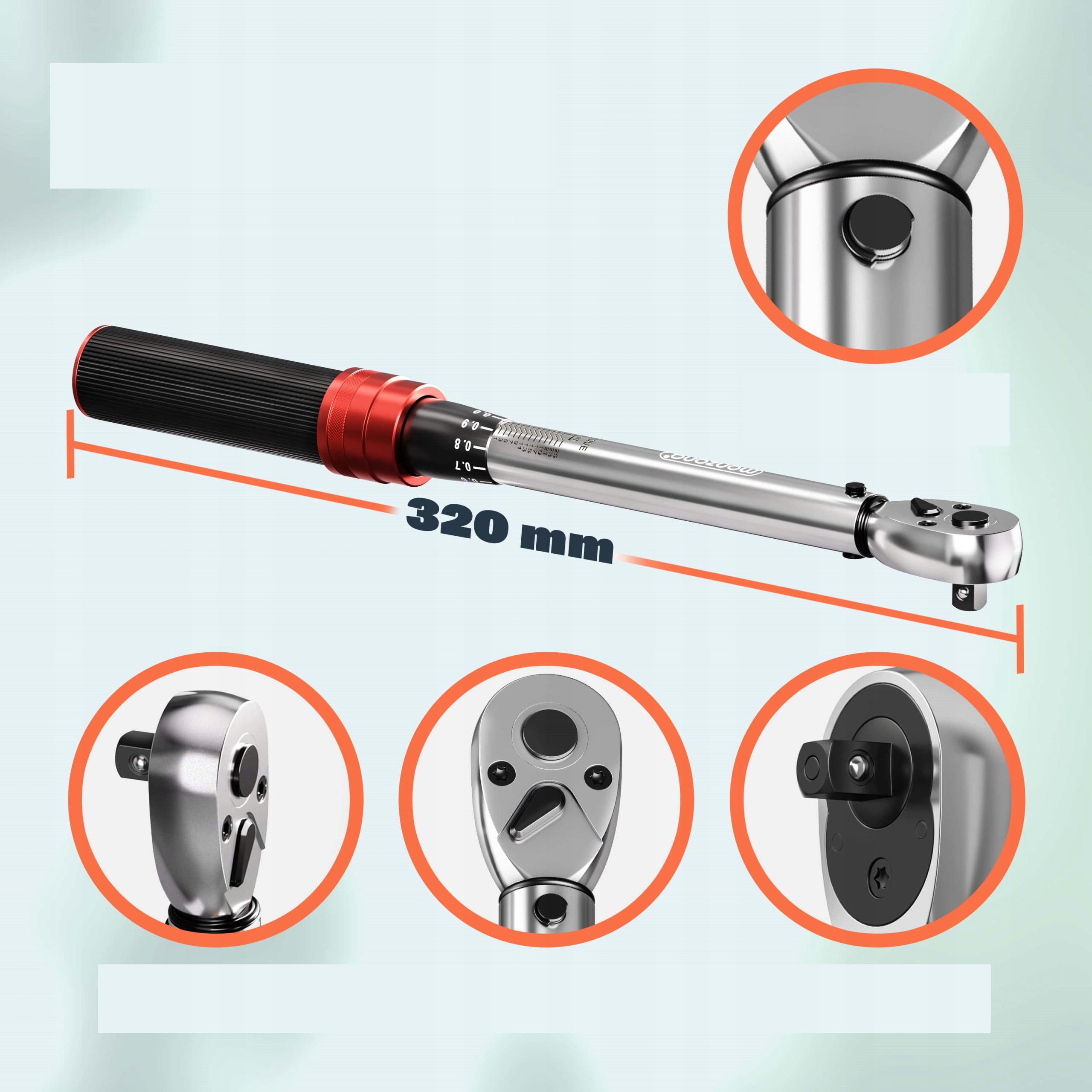 Динамометричний гайковий ключ Monzana® (1-25 нм, толерантність ± 3%) дозволяє точне встановлення деталей, що стосуються безпеки, таких як кермо, гальма або підрозділ сидіння.