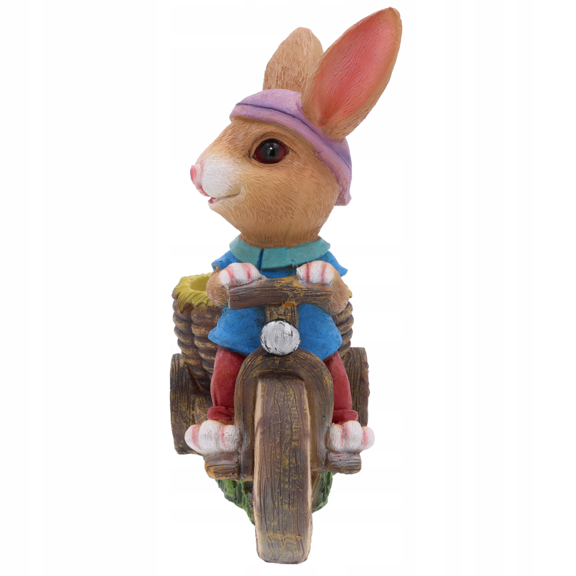 Прекрасна, масивна садова статуетка у формі зайчика на дерев’яному велосипеді. 4